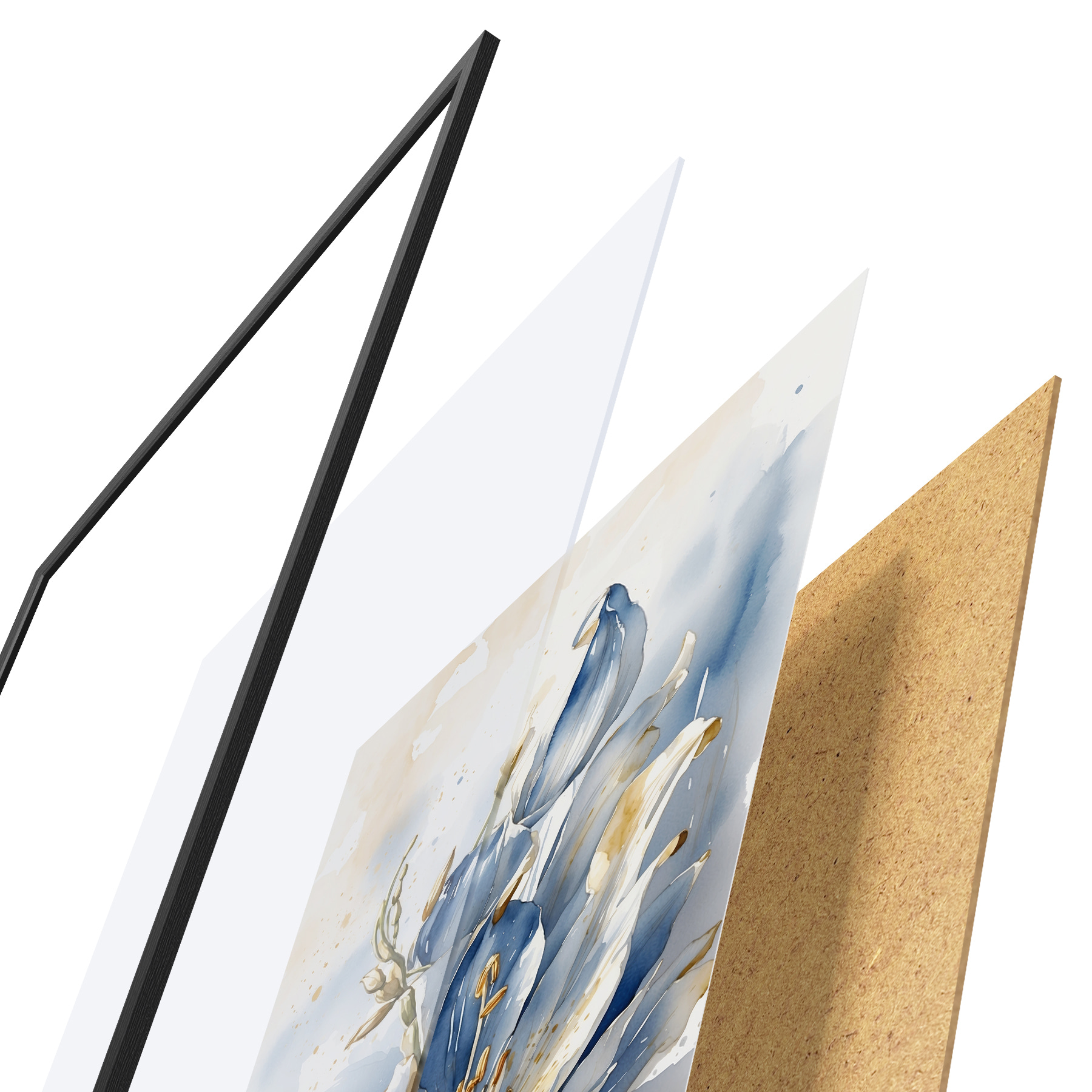 Plakatą sudaro rėmas, pleksiklas, atspausdintas vaizdas ir medžio drožlių plokštės pagrindas. Plakatą galima iš karto pakabinti ant sienos dėl kitoje pusėje esančių laikiklių.