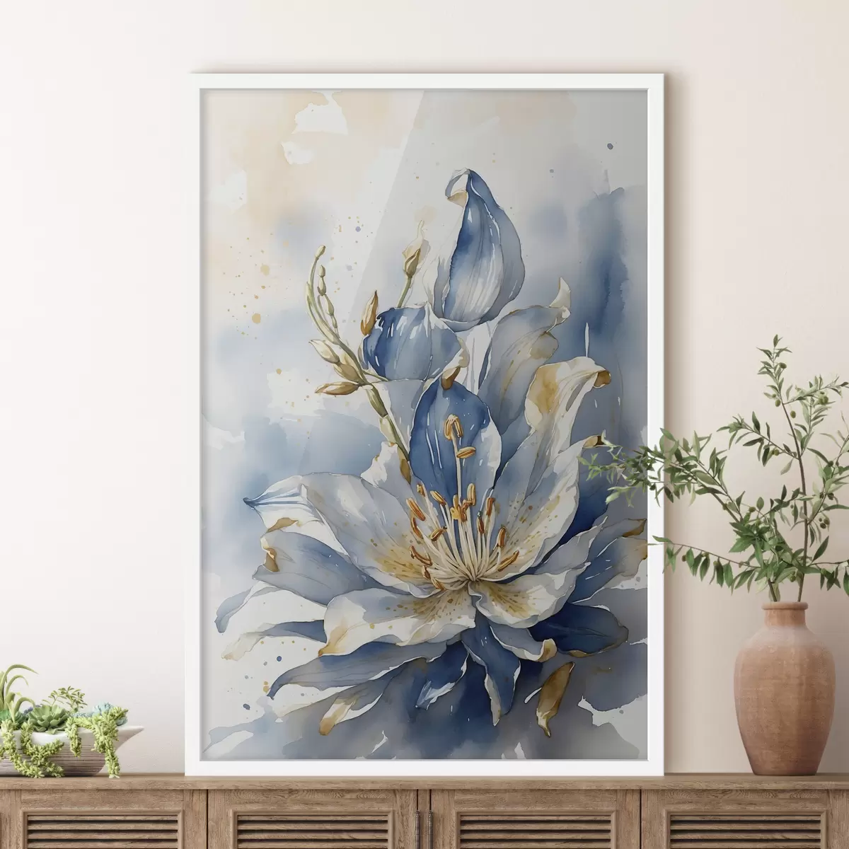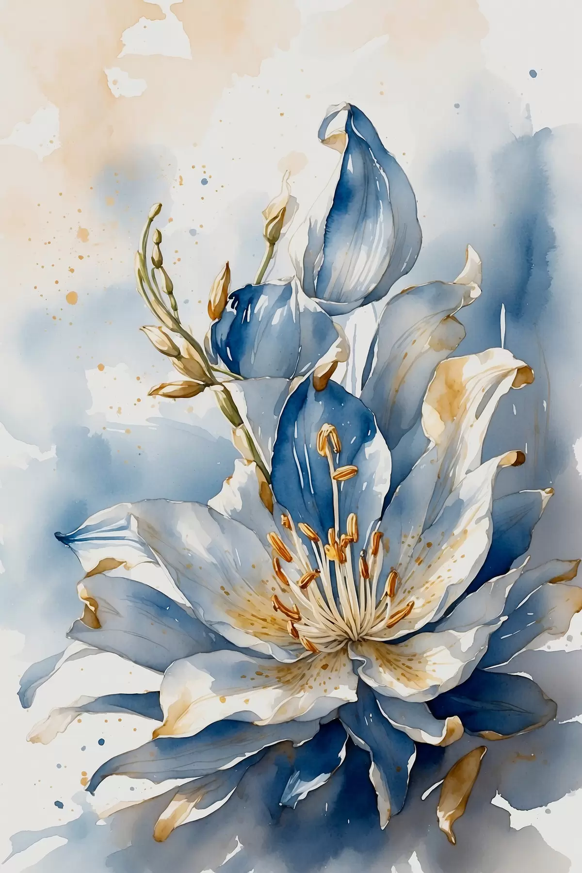 Plakatas Mėlyna lelija su akvarele f39872