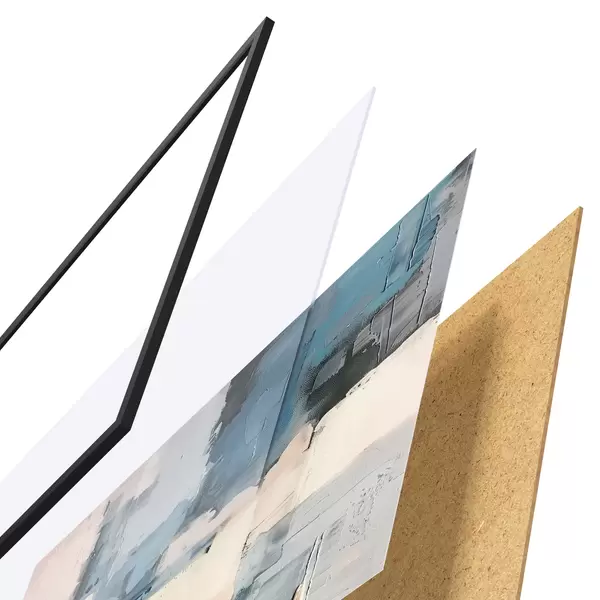 Plakatą sudaro rėmas, pleksiklas, atspausdintas vaizdas ir medžio drožlių plokštės pagrindas. Plakatą galima iš karto pakabinti ant sienos dėl kitoje pusėje esančių laikiklių.