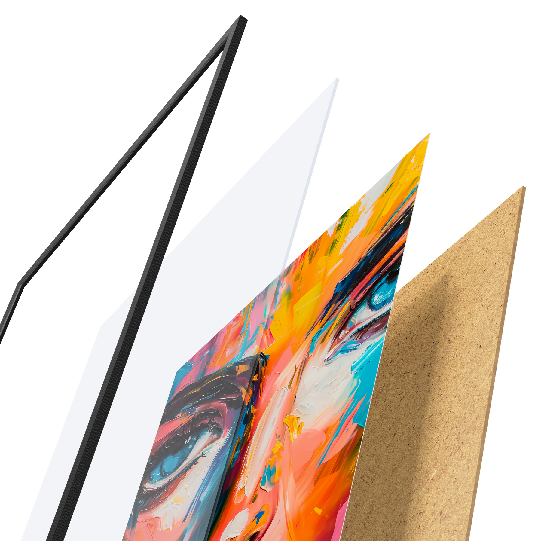 Plakatą sudaro rėmas, pleksiklas, atspausdintas vaizdas ir medžio drožlių plokštės pagrindas. Plakatą galima iš karto pakabinti ant sienos dėl kitoje pusėje esančių laikiklių.