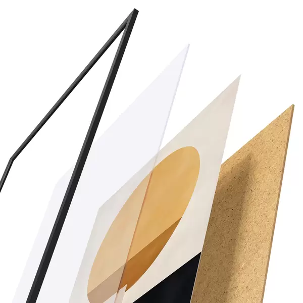 Plakatą sudaro rėmas, pleksiklas, atspausdintas vaizdas ir medžio drožlių plokštės pagrindas. Plakatą galima iš karto pakabinti ant sienos dėl kitoje pusėje esančių laikiklių.
