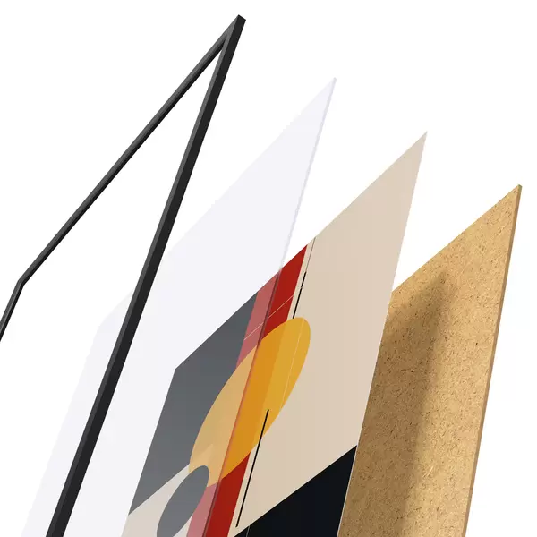 Plakatą sudaro rėmas, pleksiklas, atspausdintas vaizdas ir medžio drožlių plokštės pagrindas. Plakatą galima iš karto pakabinti ant sienos dėl kitoje pusėje esančių laikiklių.