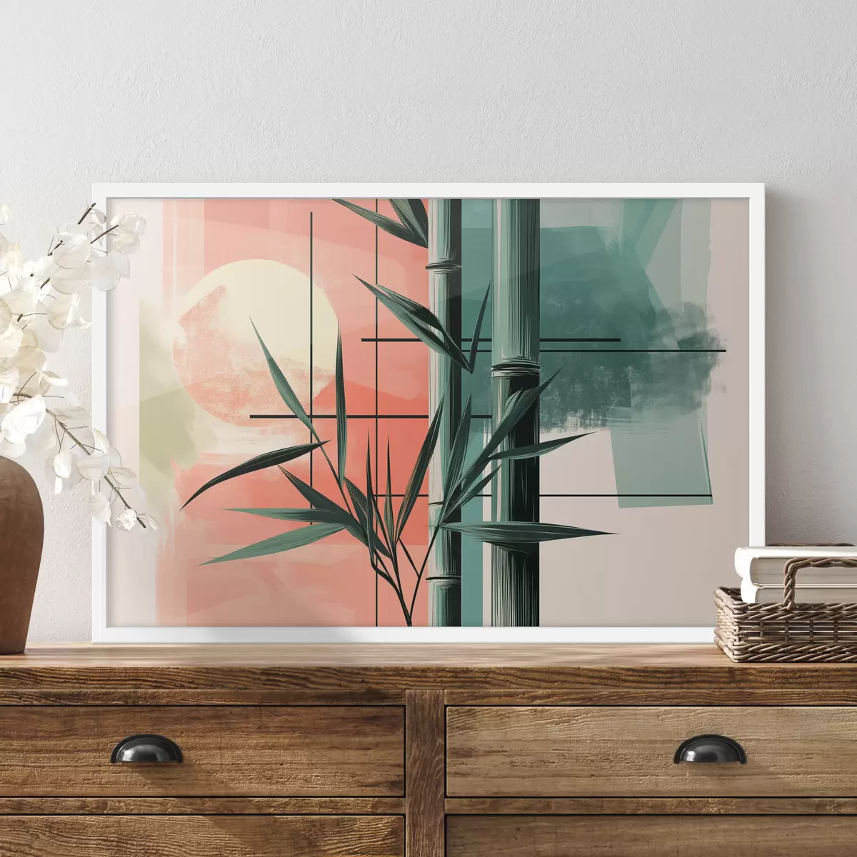 Plakatas Anotacija su bambuku ir saule Ne f39898