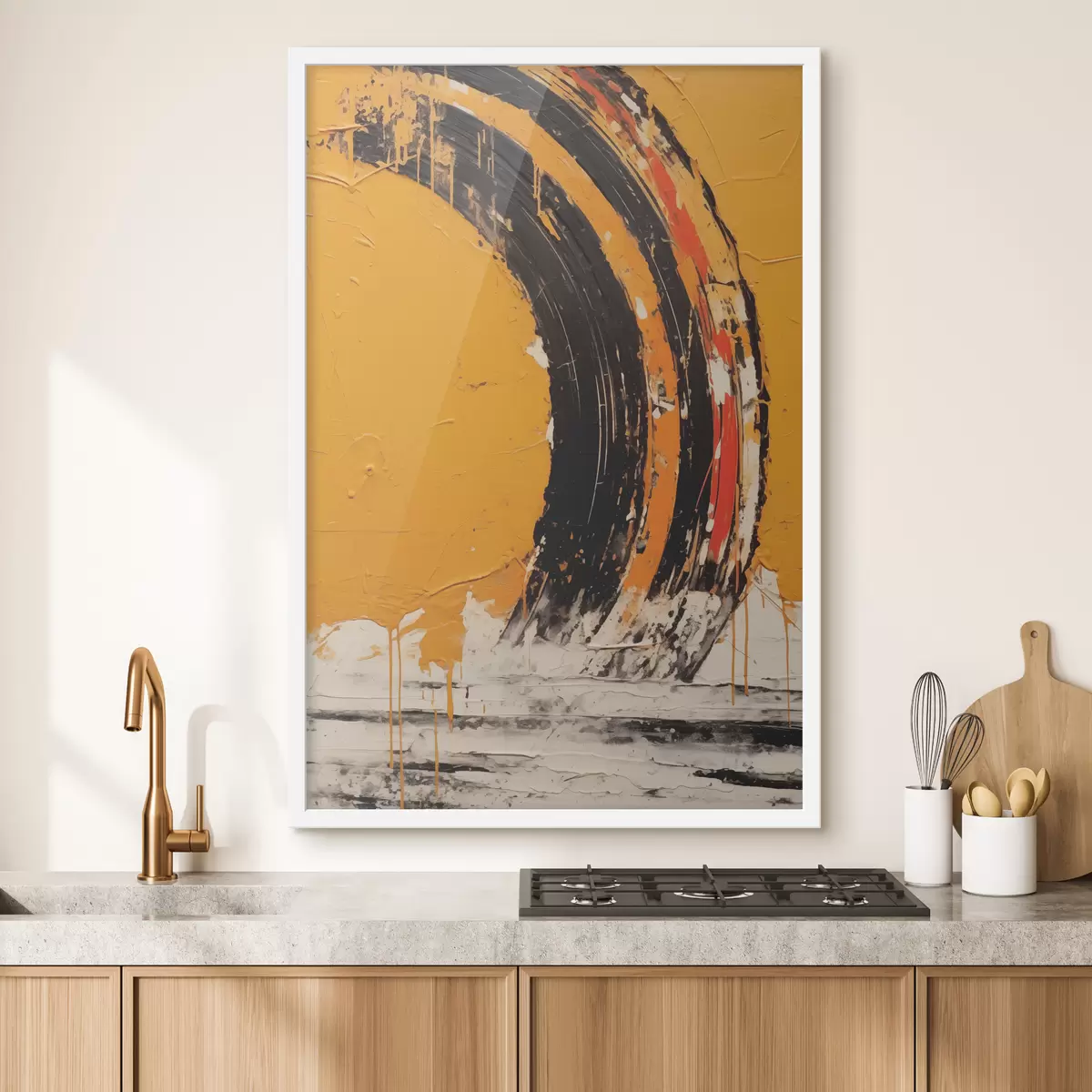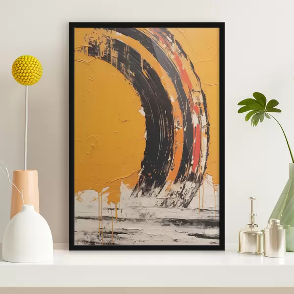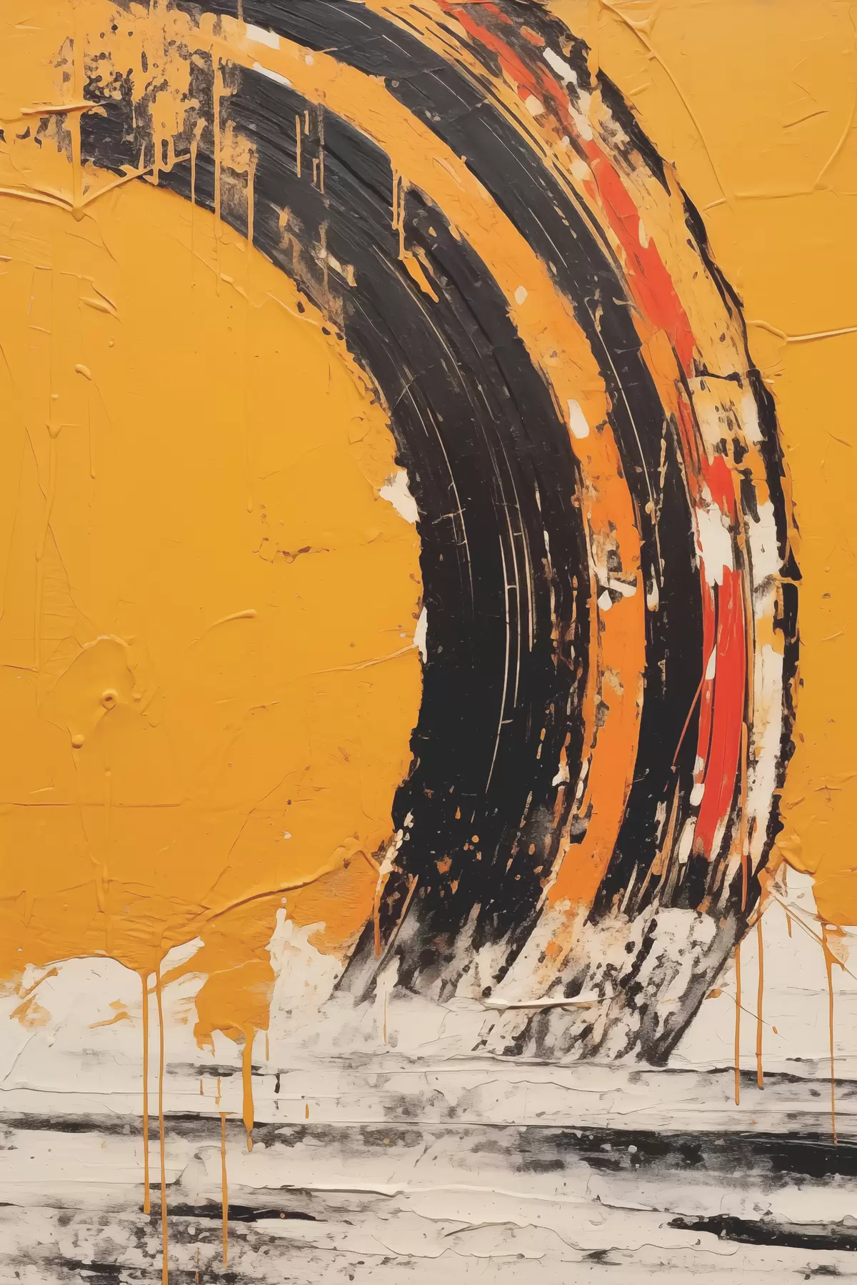 Plakatas Abstrakčios juodos juostelės ant geltono aliejaus paveikslo f39923
