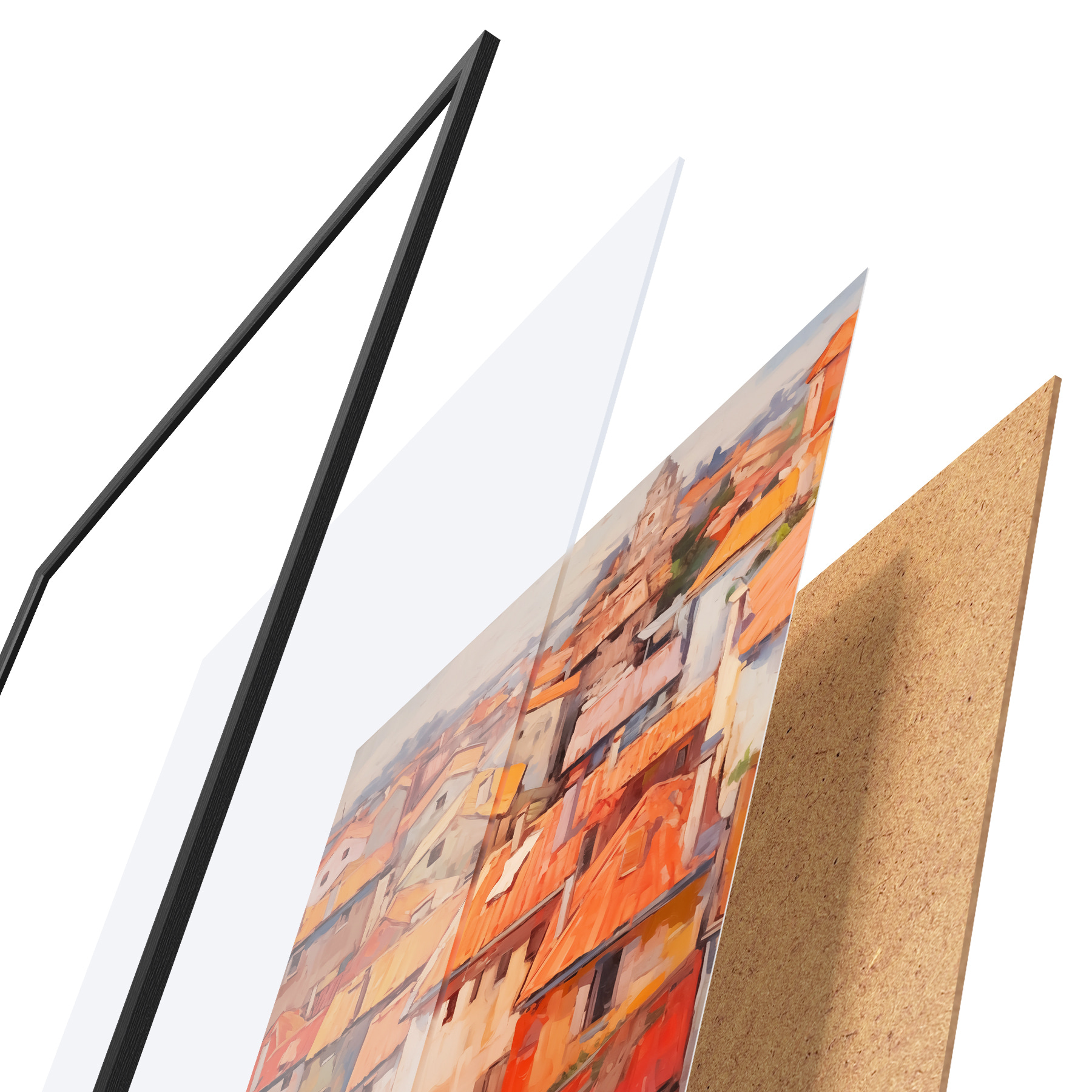 Plakatą sudaro rėmas, pleksiklas, atspausdintas vaizdas ir medžio drožlių plokštės pagrindas. Plakatą galima iš karto pakabinti ant sienos dėl kitoje pusėje esančių laikiklių.