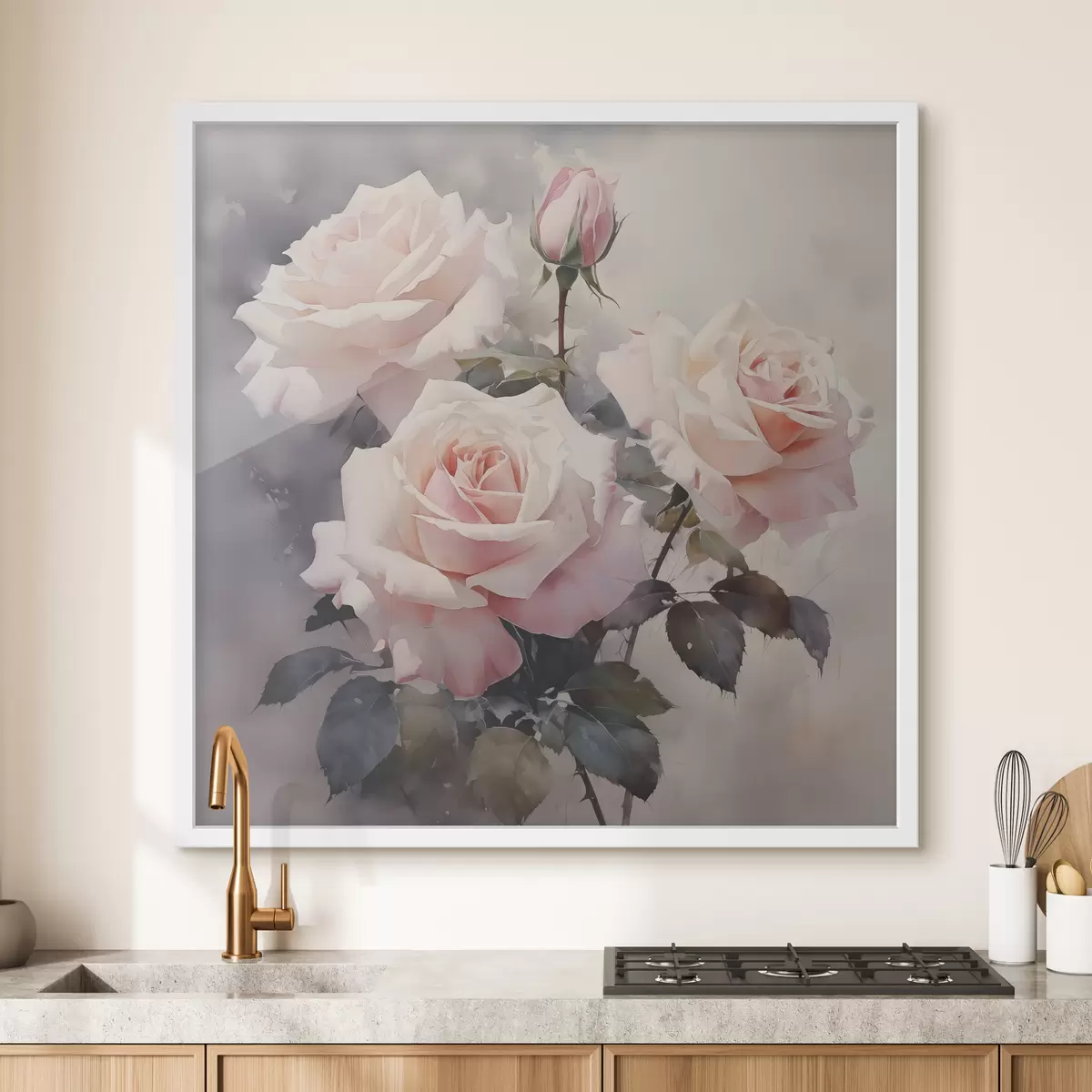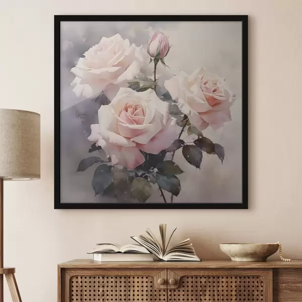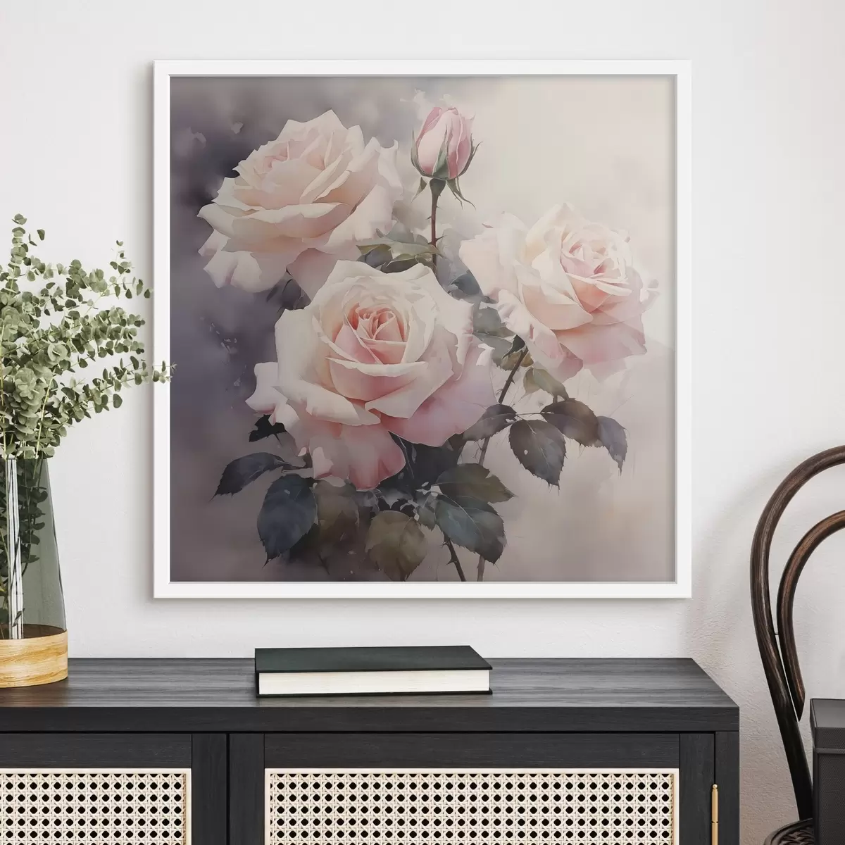 Plakatas Baltos rožinės rožės tamsiame akvareliniame fone f39927