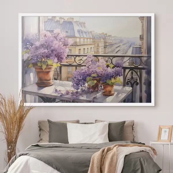 Plakatas Violetinės vazonėlyje balkone Paryžiaus akvarelė Ne f39931