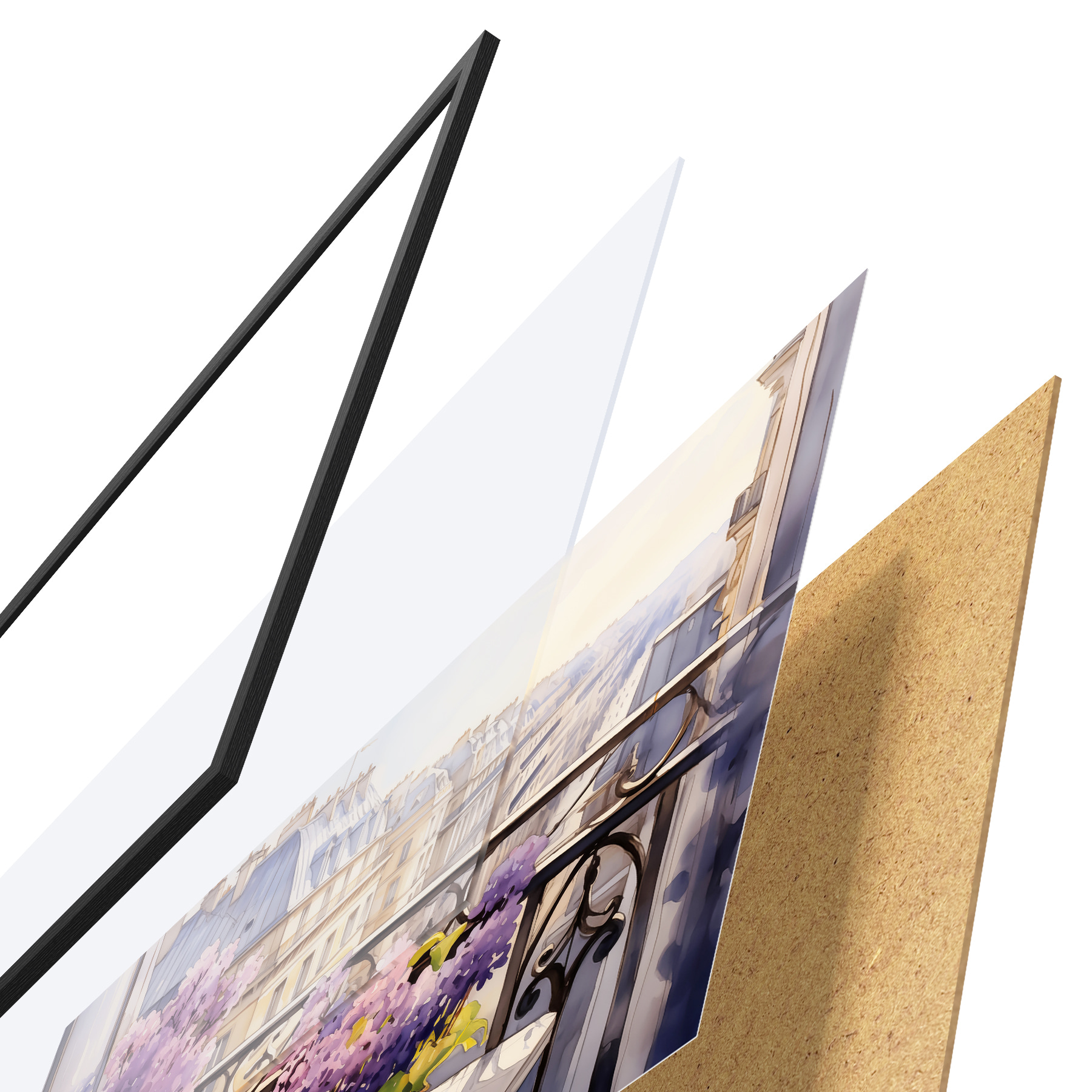 Plakatą sudaro rėmas, pleksiklas, atspausdintas vaizdas ir medžio drožlių plokštės pagrindas. Plakatą galima iš karto pakabinti ant sienos dėl kitoje pusėje esančių laikiklių.