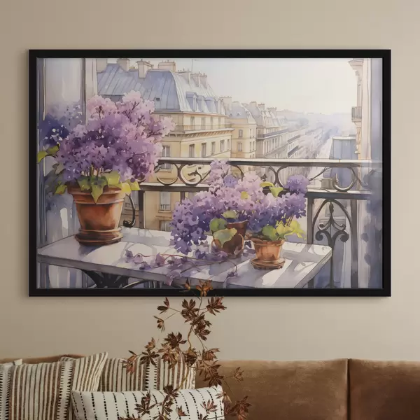 Plakatas Violetinės vazonėlyje balkone Paryžiaus akvarelė Ne f39931