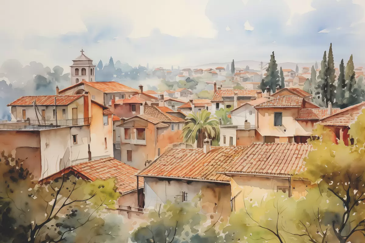 Plakatas Italijos kaimo akvarelė Ne f39935