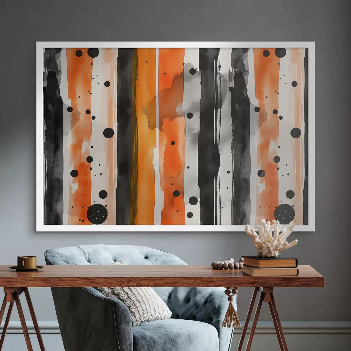 Plakatas Juostos, akvarelė, juoda, oranžinė f39948