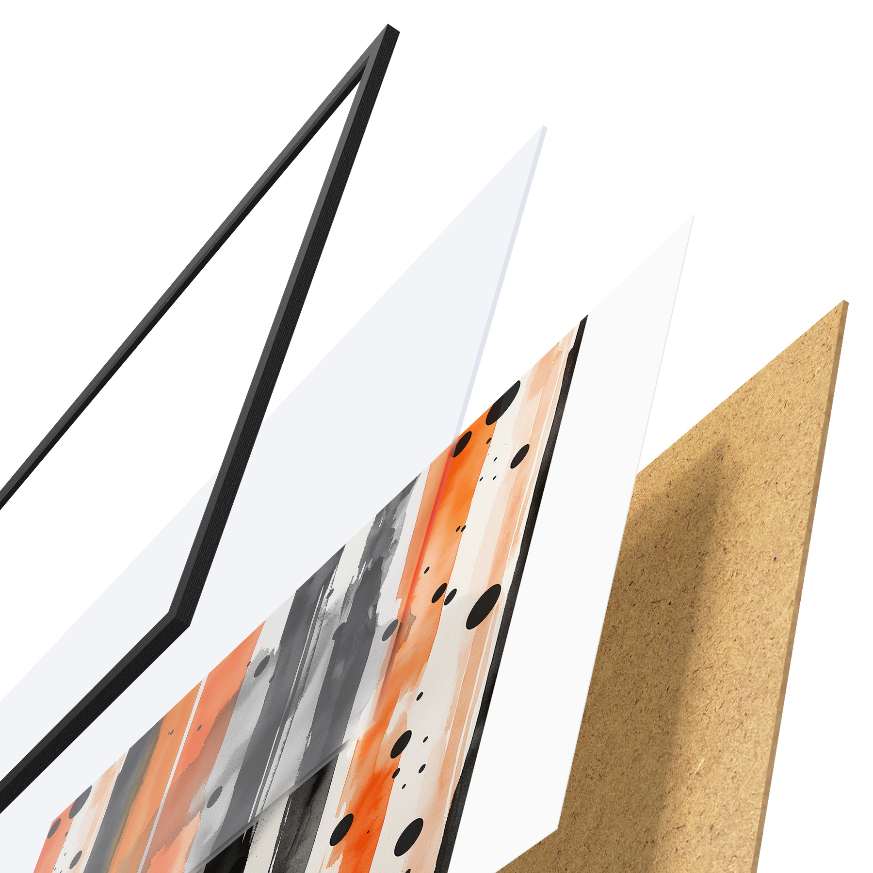 Plakatą sudaro rėmas, pleksiklas, atspausdintas vaizdas ir medžio drožlių plokštės pagrindas. Plakatą galima iš karto pakabinti ant sienos dėl kitoje pusėje esančių laikiklių.