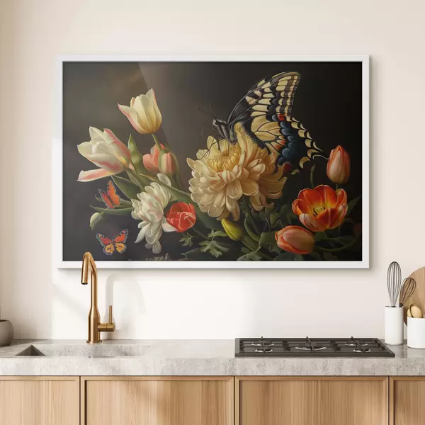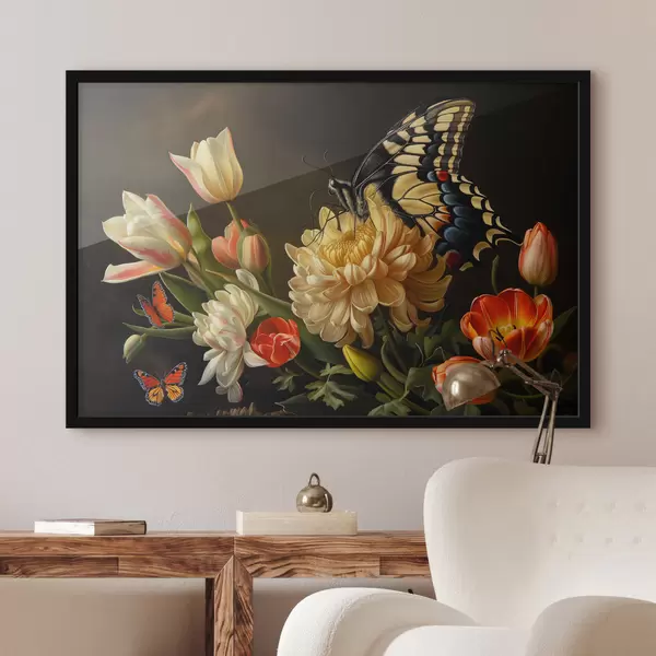 Plakatas Drugelis, puokštė, gėlės, tulpė, chrizantema Ne f39949