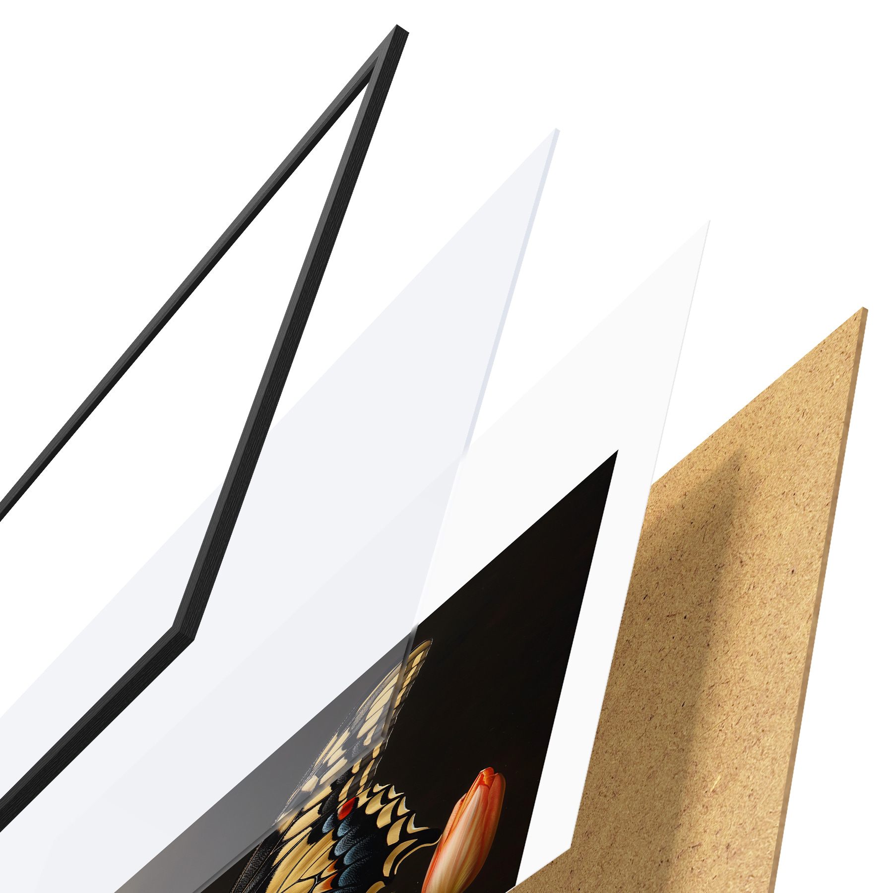 Plakatą sudaro rėmas, pleksiklas, atspausdintas vaizdas ir medžio drožlių plokštės pagrindas. Plakatą galima iš karto pakabinti ant sienos dėl kitoje pusėje esančių laikiklių.
