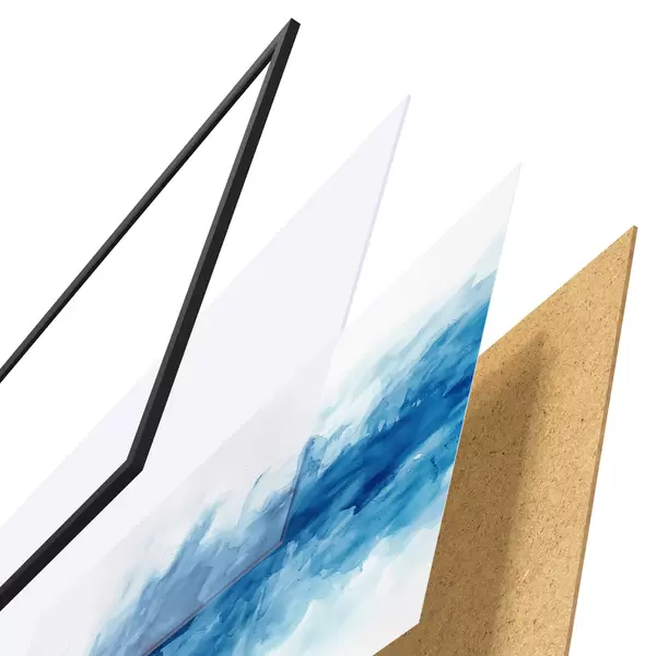 Plakatą sudaro rėmas, pleksiklas, atspausdintas vaizdas ir medžio drožlių plokštės pagrindas. Plakatą galima iš karto pakabinti ant sienos dėl kitoje pusėje esančių laikiklių.