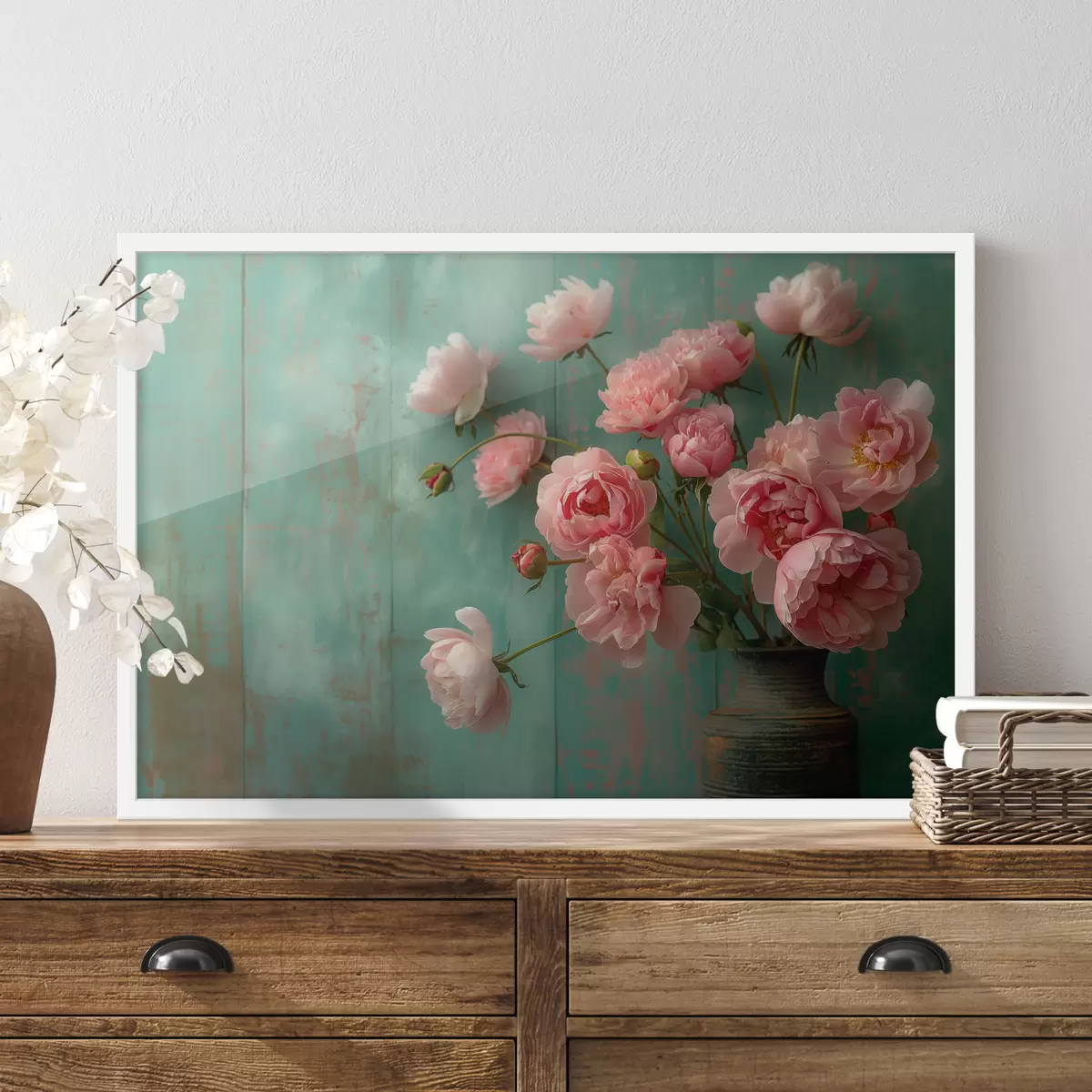 Plakatas Rožinės gėlės, mediena, antikvariniai f39957