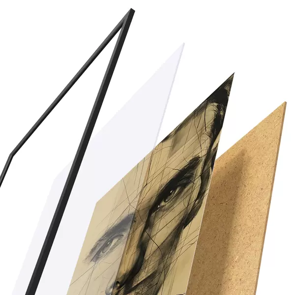 Plakatą sudaro rėmas, pleksiklas, atspausdintas vaizdas ir medžio drožlių plokštės pagrindas. Plakatą galima iš karto pakabinti ant sienos dėl kitoje pusėje esančių laikiklių.
