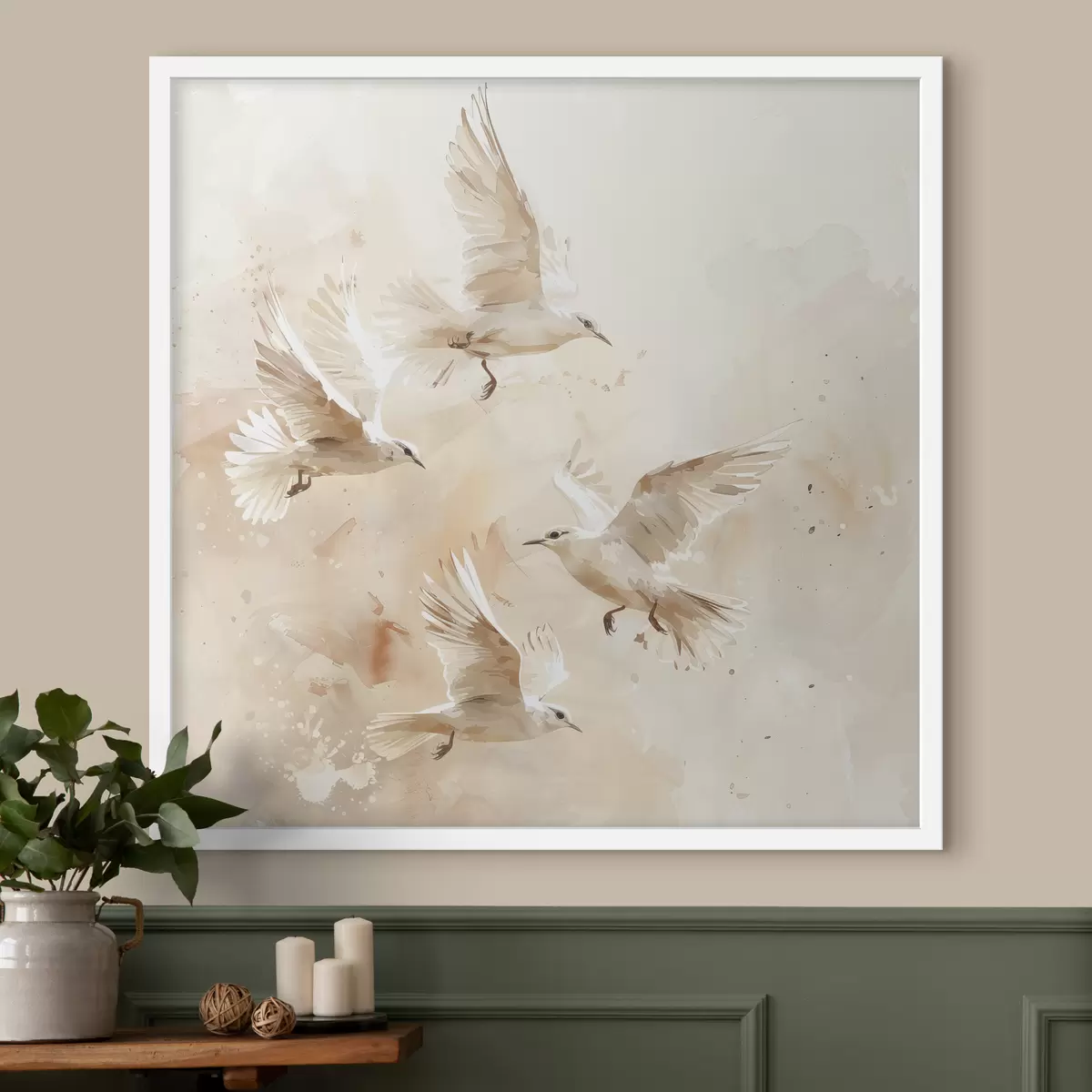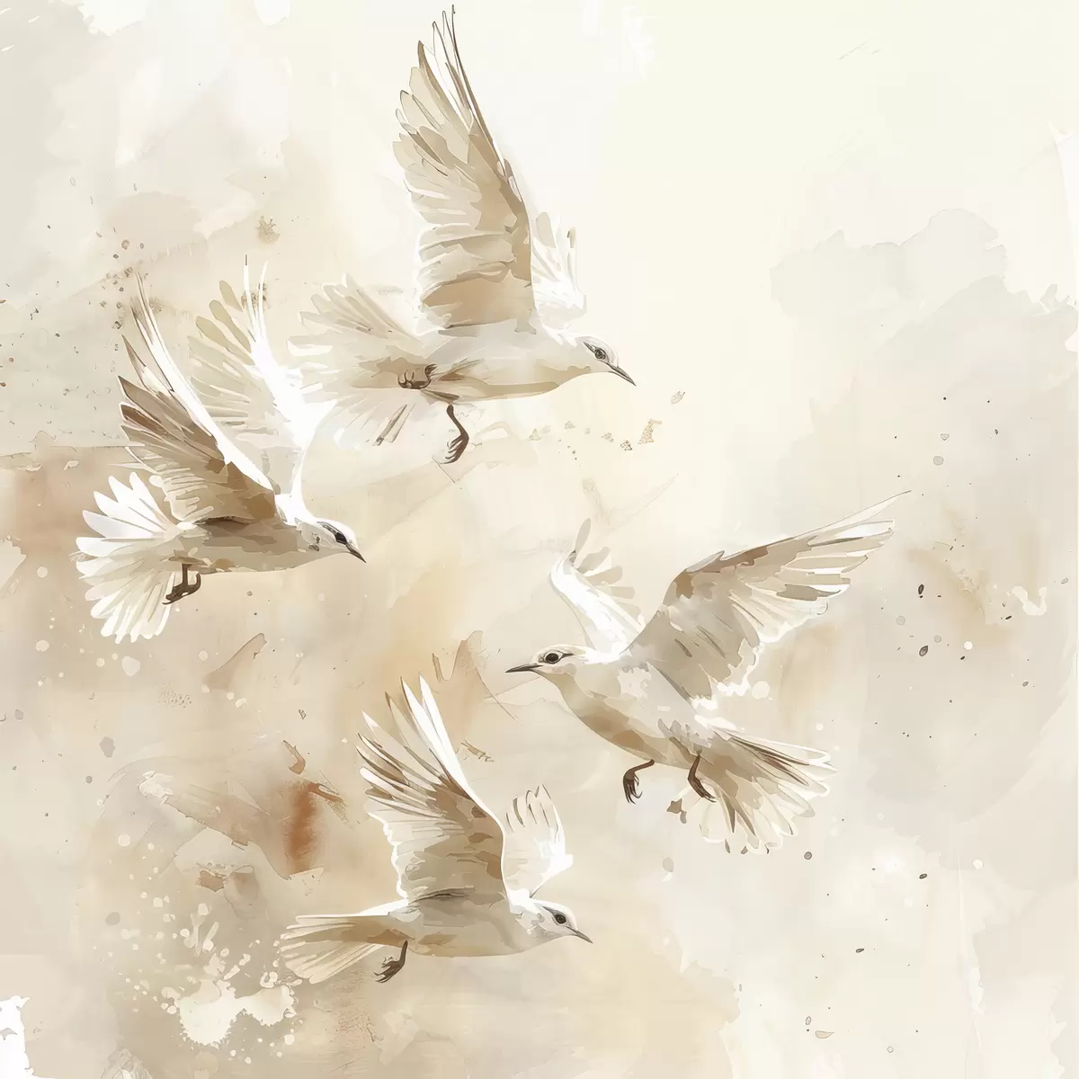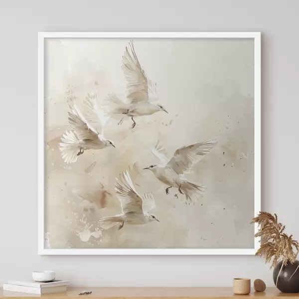 Plakatas Akvarelė skraidantys paukščiai, subtilios pastelinės spalvos, abstrakcija Ne f39973