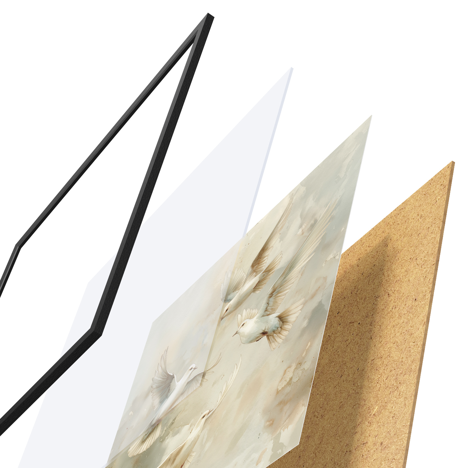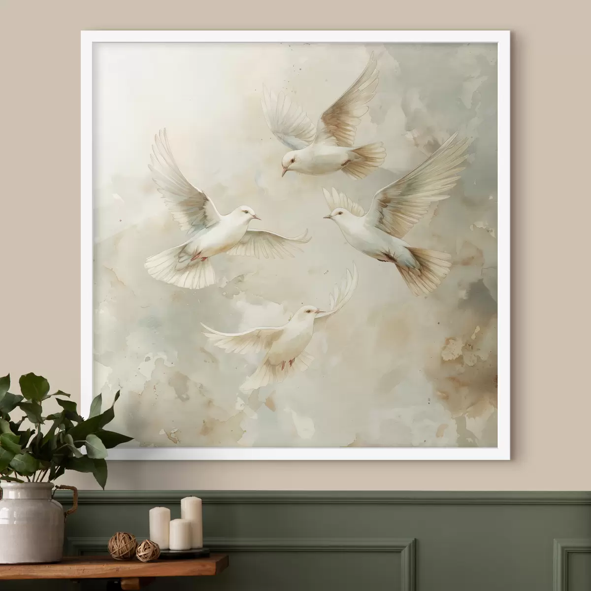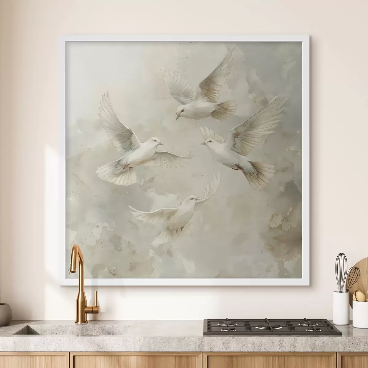 Plakatas Akvarelė skraidantys paukščiai, švelnios smėlio ir baltos spalvos, balandžiai Ne f39976