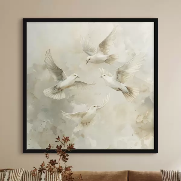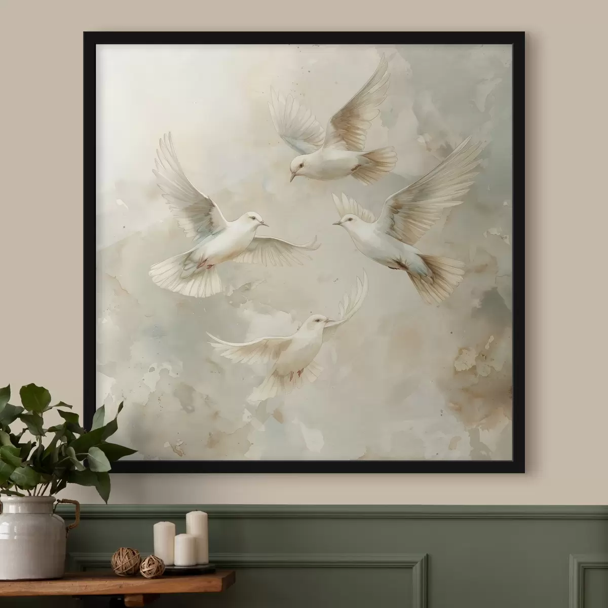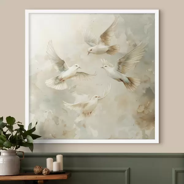 Plakatas Akvarelė skraidantys paukščiai, švelnios smėlio ir baltos spalvos, balandžiai Ne f39976