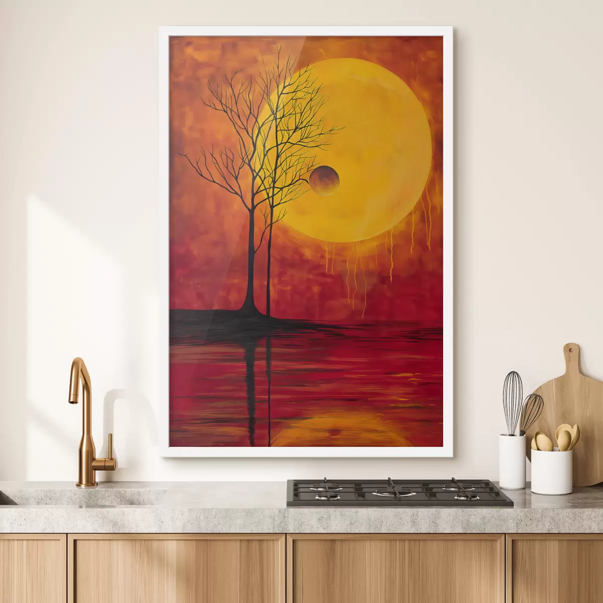 Plakatas Abstrakcija, saulė, raudona, geltona Ne f40005