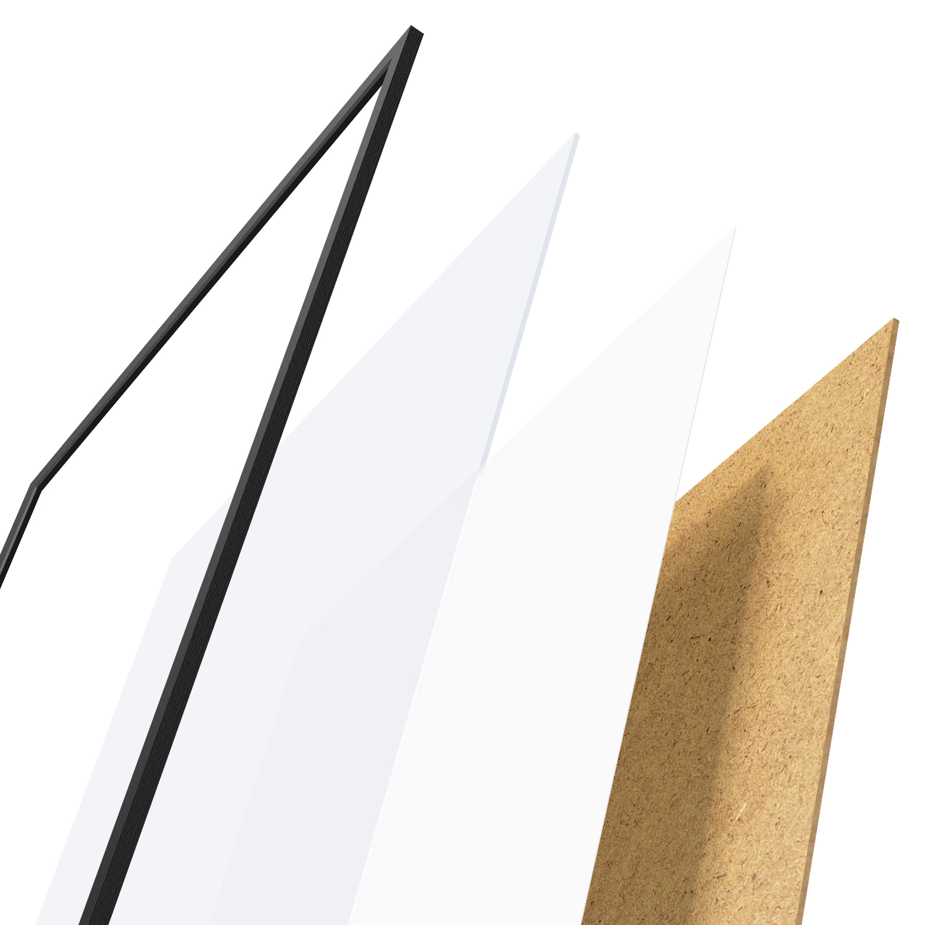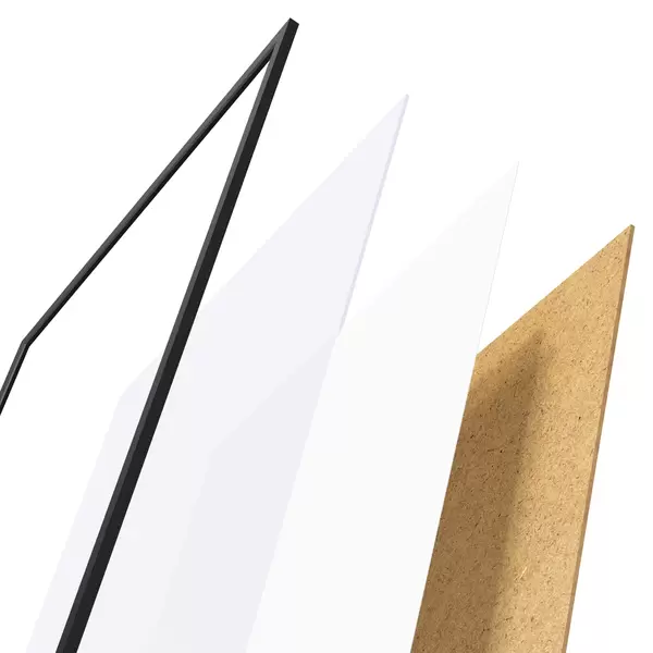 Plakatą sudaro rėmas, pleksiklas, atspausdintas vaizdas ir medžio drožlių plokštės pagrindas. Plakatą galima iš karto pakabinti ant sienos dėl kitoje pusėje esančių laikiklių.
