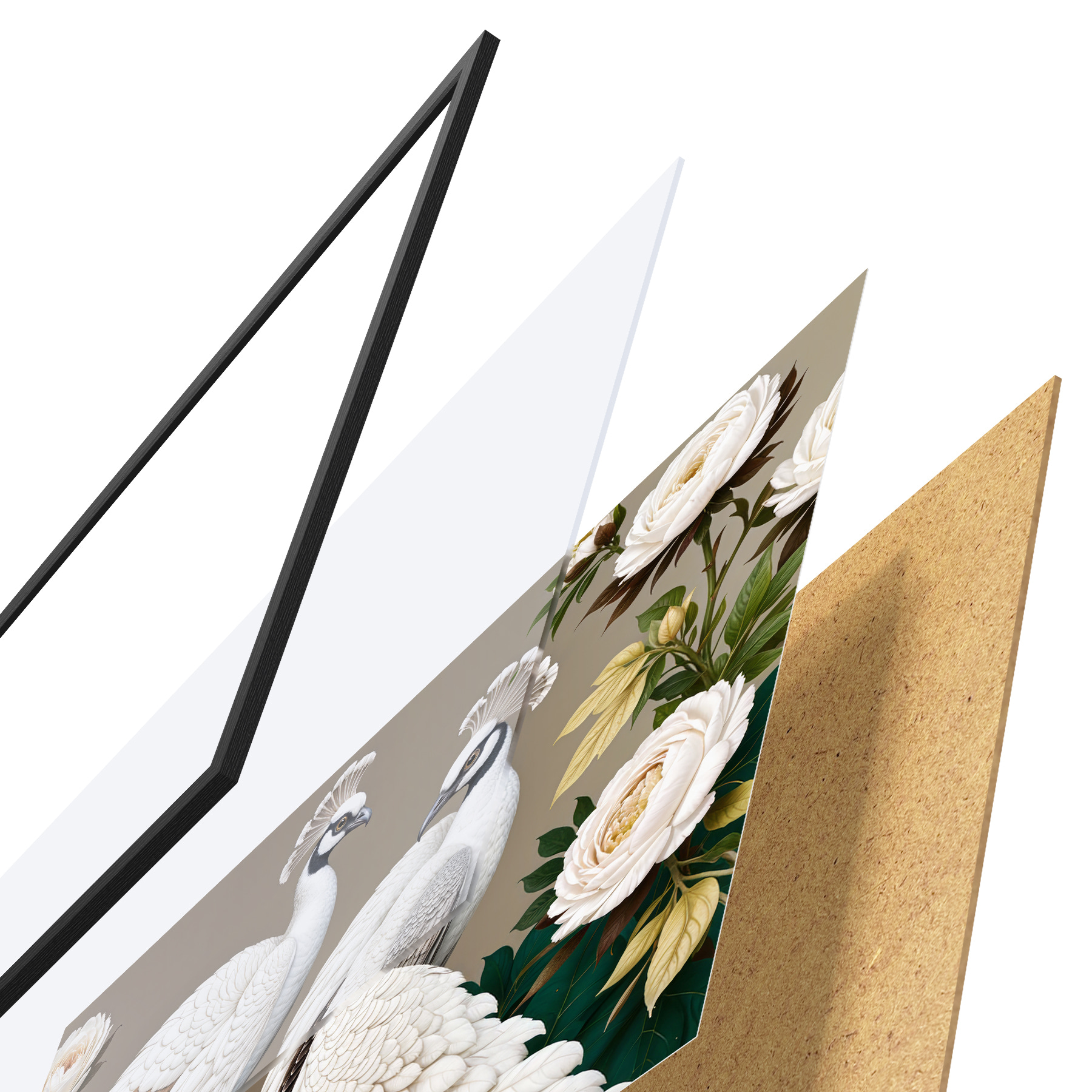 Plakatą sudaro rėmas, pleksiklas, atspausdintas vaizdas ir medžio drožlių plokštės pagrindas. Plakatą galima iš karto pakabinti ant sienos dėl kitoje pusėje esančių laikiklių.