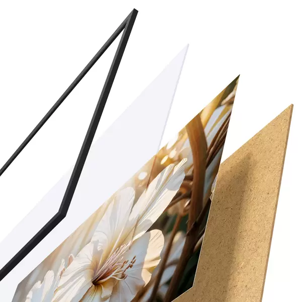 Plakatą sudaro rėmas, pleksiklas, atspausdintas vaizdas ir medžio drožlių plokštės pagrindas. Plakatą galima iš karto pakabinti ant sienos dėl kitoje pusėje esančių laikiklių.