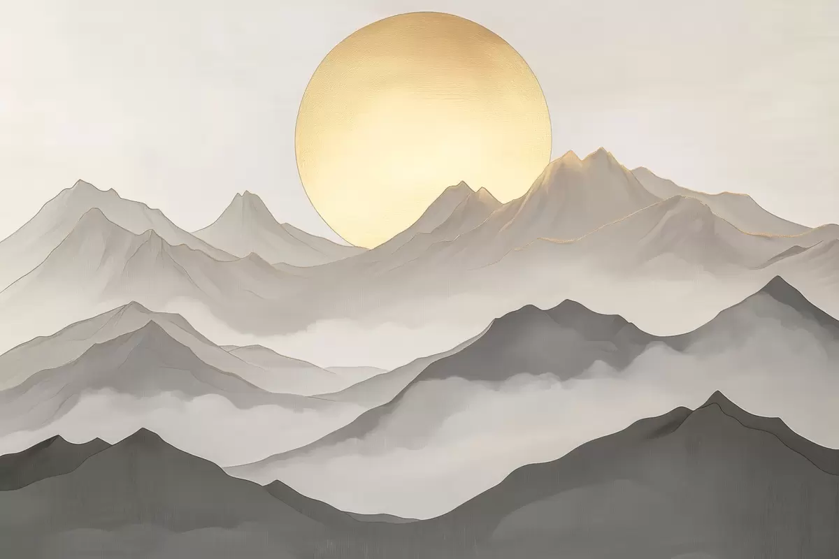 Plakatas Abstraktūs kalnai su saule Ne f40037