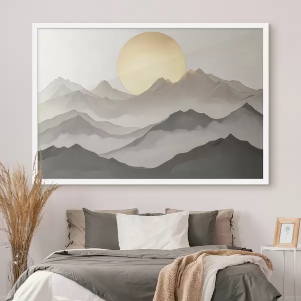 Plakatas Abstraktūs kalnai su saule f40037