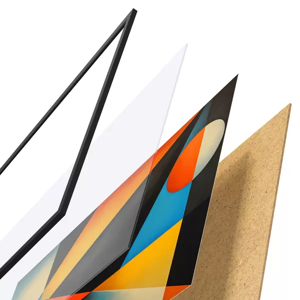 Plakatą sudaro rėmas, pleksiklas, atspausdintas vaizdas ir medžio drožlių plokštės pagrindas. Plakatą galima iš karto pakabinti ant sienos dėl kitoje pusėje esančių laikiklių.