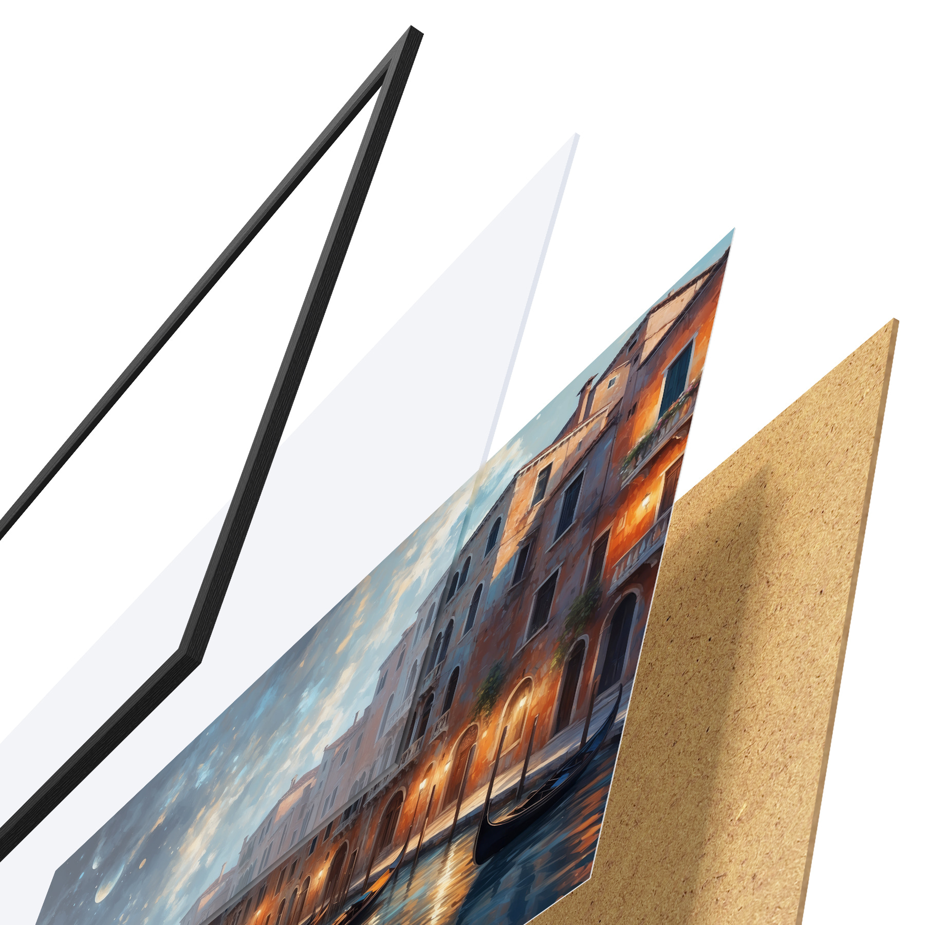 Plakatą sudaro rėmas, pleksiklas, atspausdintas vaizdas ir medžio drožlių plokštės pagrindas. Plakatą galima iš karto pakabinti ant sienos dėl kitoje pusėje esančių laikiklių.