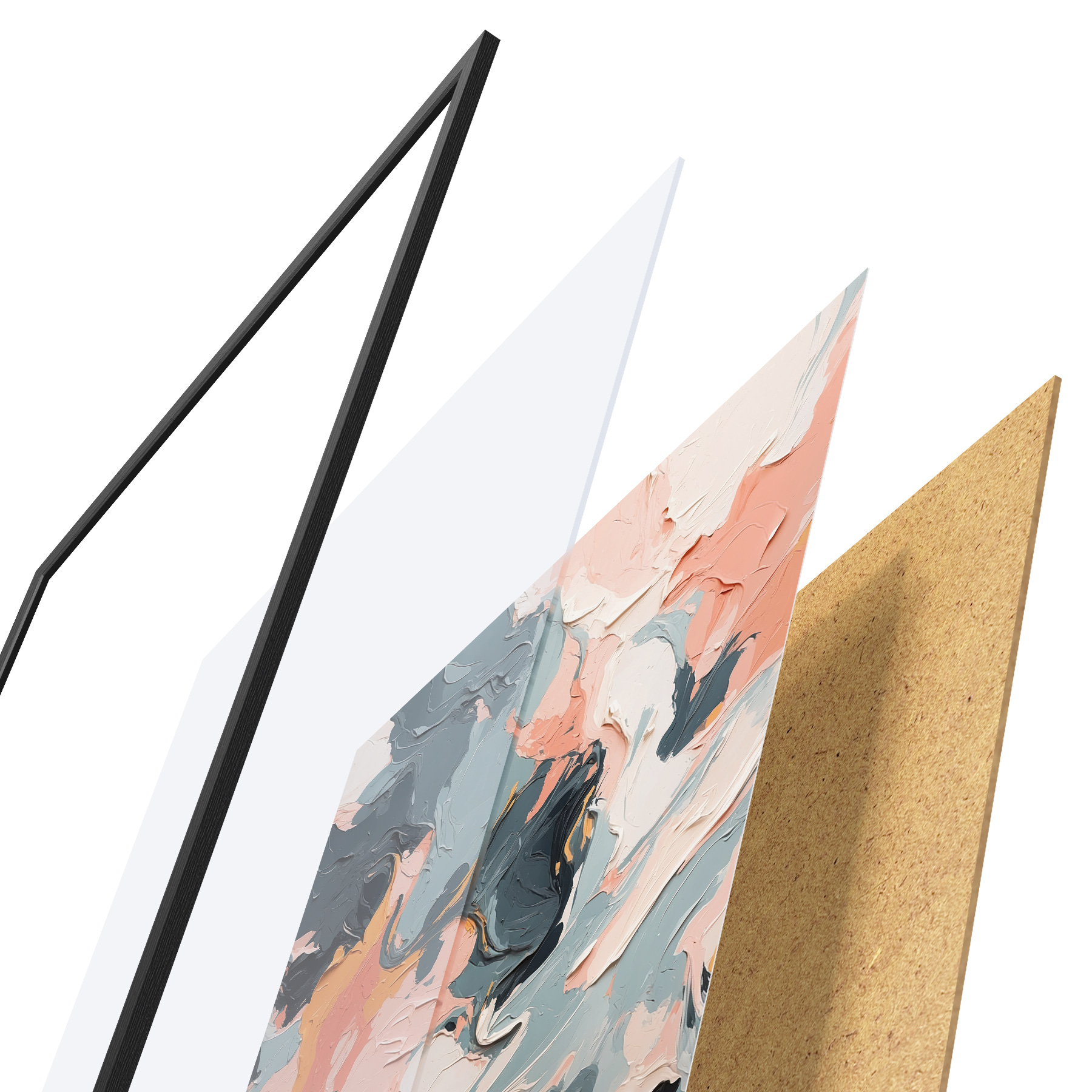 Plakatą sudaro rėmas, pleksiklas, atspausdintas vaizdas ir medžio drožlių plokštės pagrindas. Plakatą galima iš karto pakabinti ant sienos dėl kitoje pusėje esančių laikiklių.