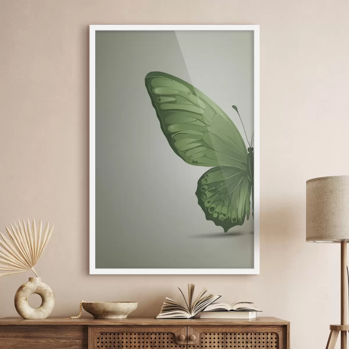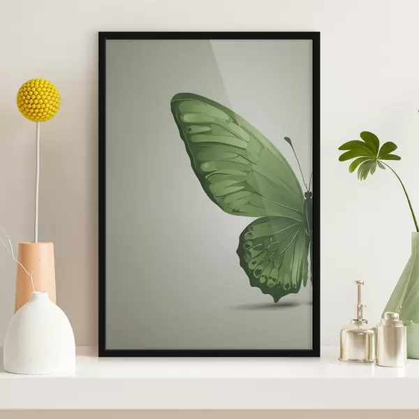 Plakatas Kairysis žalio drugelio sparnas baltame fone Ne f40062