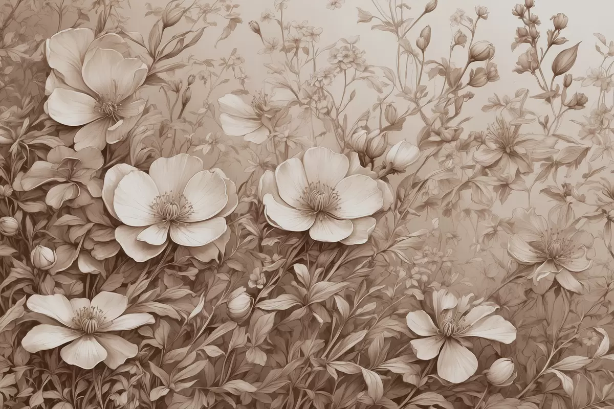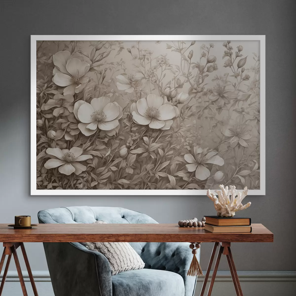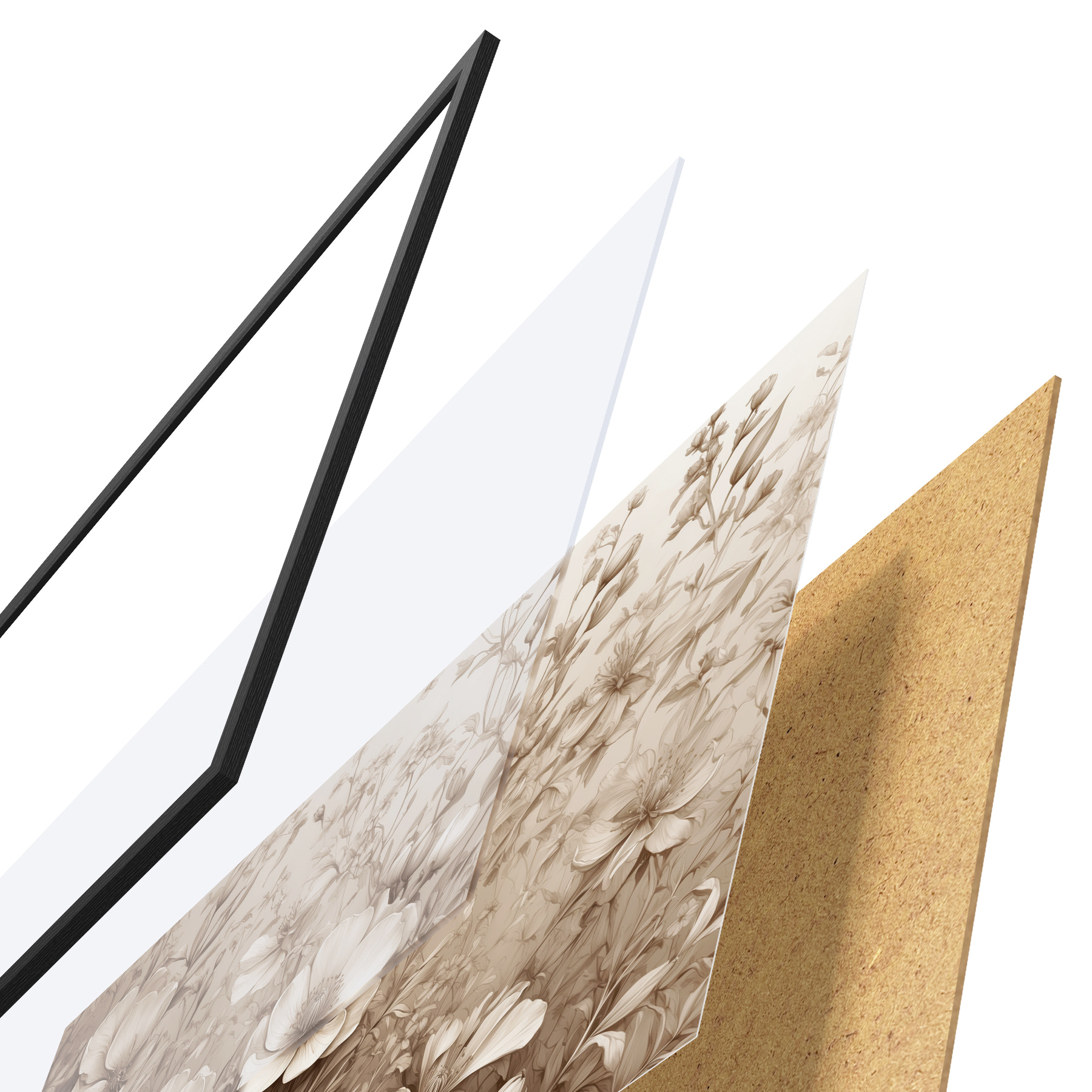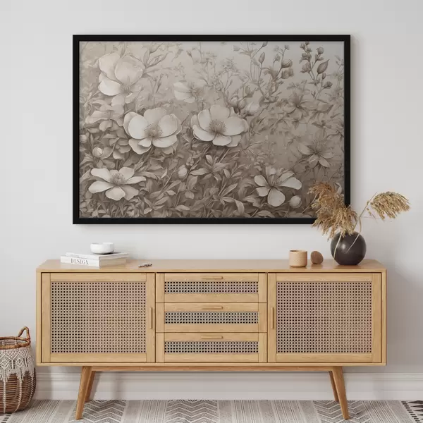 Plakatas Gėlės ir lapai sepijos spalvos f40072