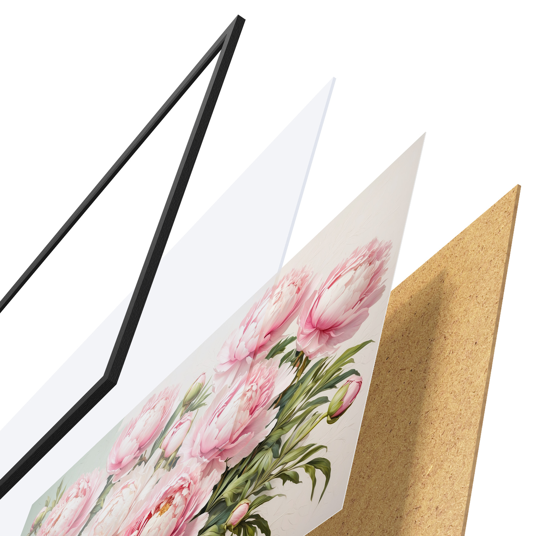 Plakatą sudaro rėmas, pleksiklas, atspausdintas vaizdas ir medžio drožlių plokštės pagrindas. Plakatą galima iš karto pakabinti ant sienos dėl kitoje pusėje esančių laikiklių.