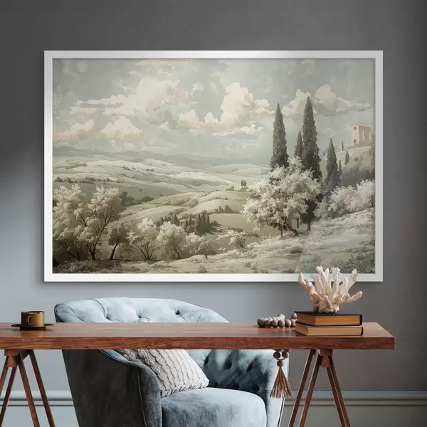Plakatas Vasaros peizažas, vintažinis stilius, pastelinės spalvos, akrilo piešinys, pilis Ne f40084