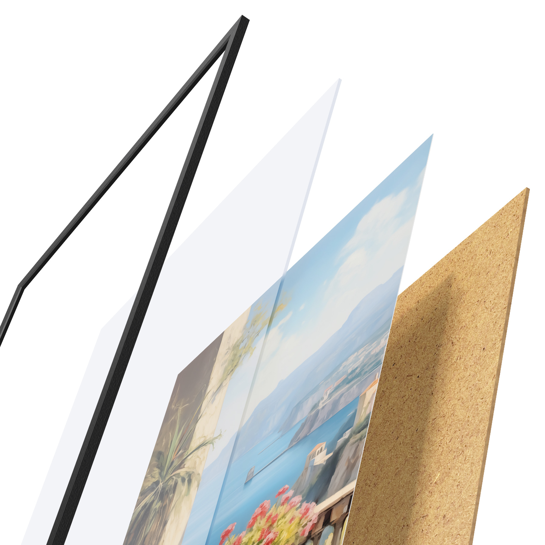 Plakatą sudaro rėmas, pleksiklas, atspausdintas vaizdas ir medžio drožlių plokštės pagrindas. Plakatą galima iš karto pakabinti ant sienos dėl kitoje pusėje esančių laikiklių.