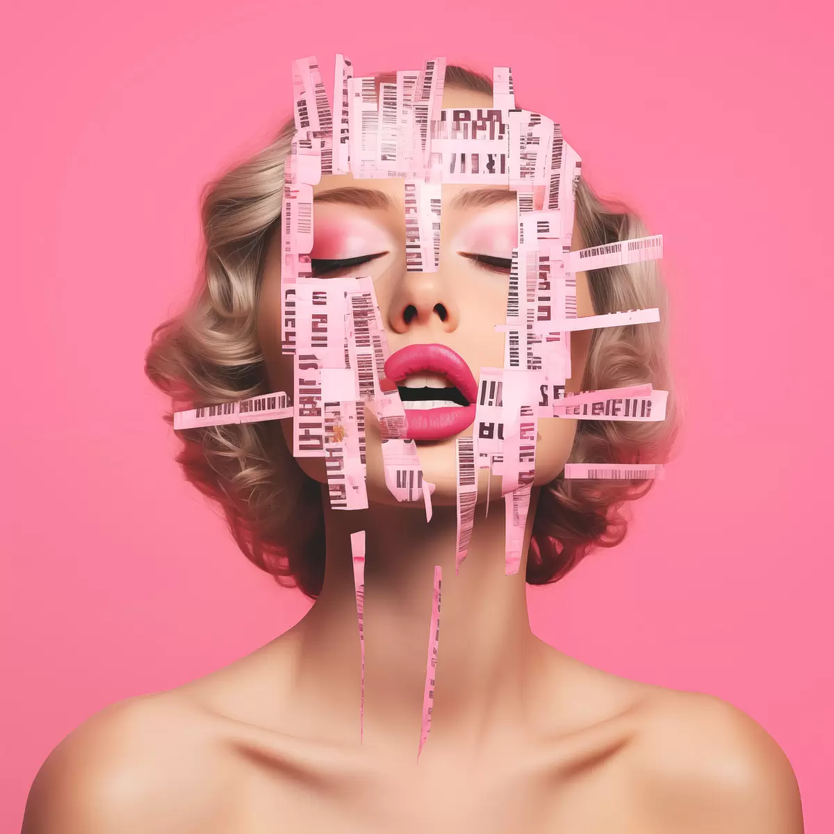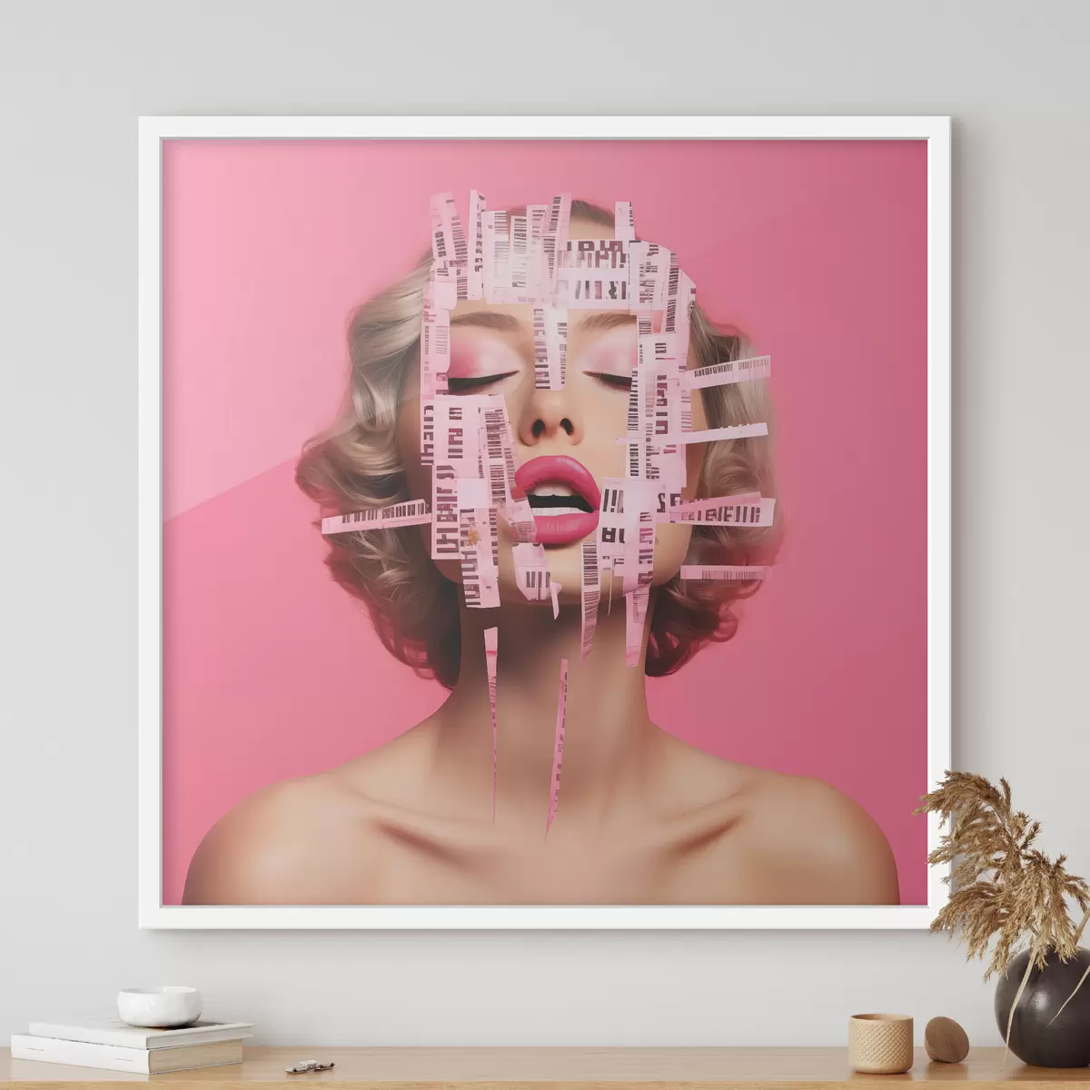 Plakatas Merginos portretas, padengtas brūkšniniais kodais rožiniame fone f40100