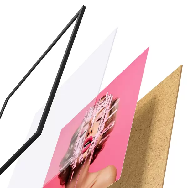 Plakatą sudaro rėmas, pleksiklas, atspausdintas vaizdas ir medžio drožlių plokštės pagrindas. Plakatą galima iš karto pakabinti ant sienos dėl kitoje pusėje esančių laikiklių.
