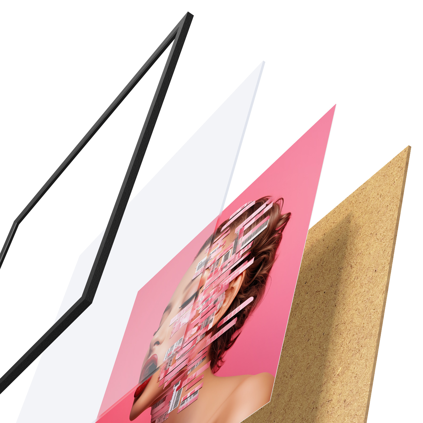 Plakatą sudaro rėmas, pleksiklas, atspausdintas vaizdas ir medžio drožlių plokštės pagrindas. Plakatą galima iš karto pakabinti ant sienos dėl kitoje pusėje esančių laikiklių.