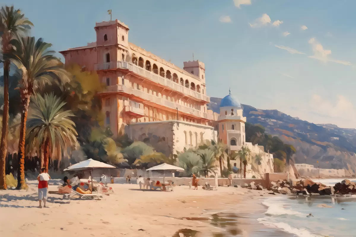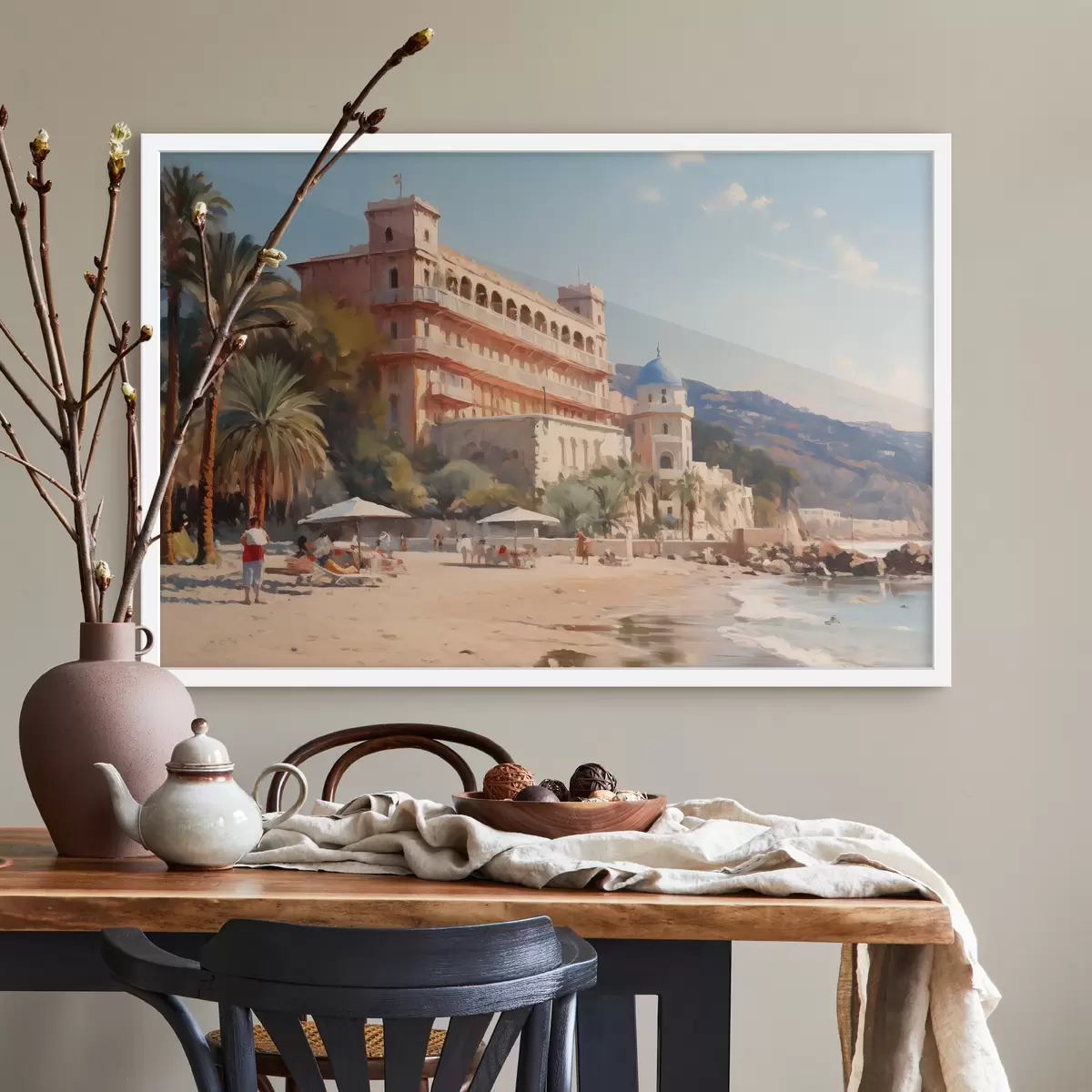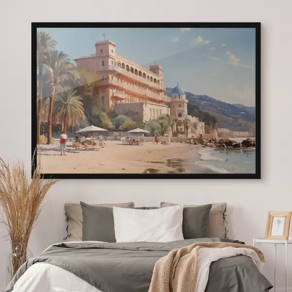 Plakatas Viešbutis Italijos pakrantėje prie jūros aliejinės tapybos imitacija f40106