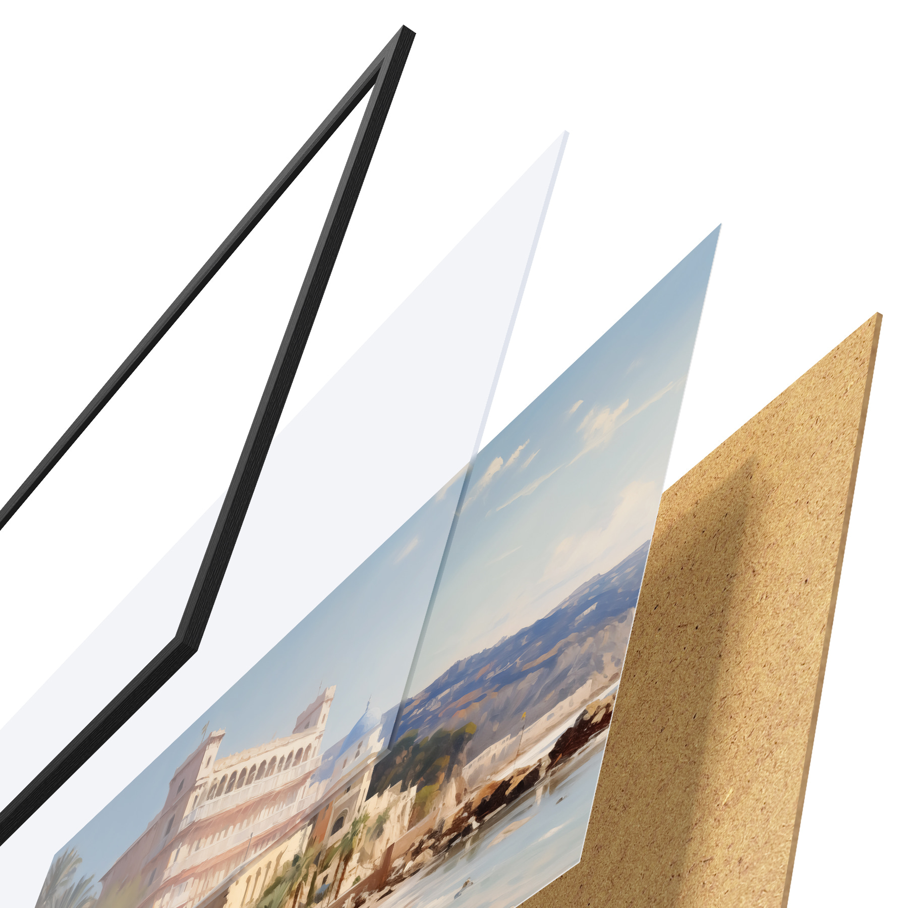Plakatą sudaro rėmas, pleksiklas, atspausdintas vaizdas ir medžio drožlių plokštės pagrindas. Plakatą galima iš karto pakabinti ant sienos dėl kitoje pusėje esančių laikiklių.