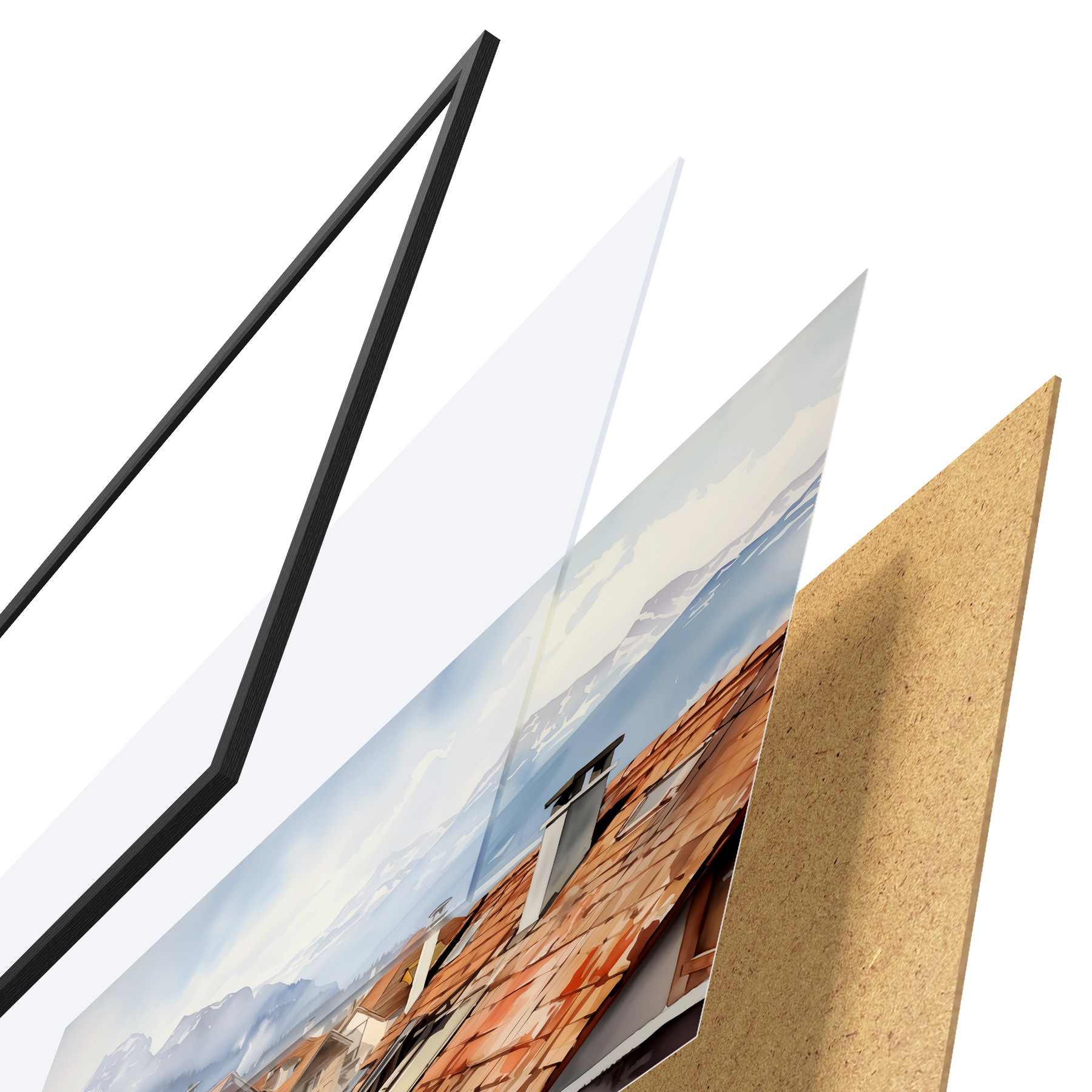 Plakatą sudaro rėmas, pleksiklas, atspausdintas vaizdas ir medžio drožlių plokštės pagrindas. Plakatą galima iš karto pakabinti ant sienos dėl kitoje pusėje esančių laikiklių.