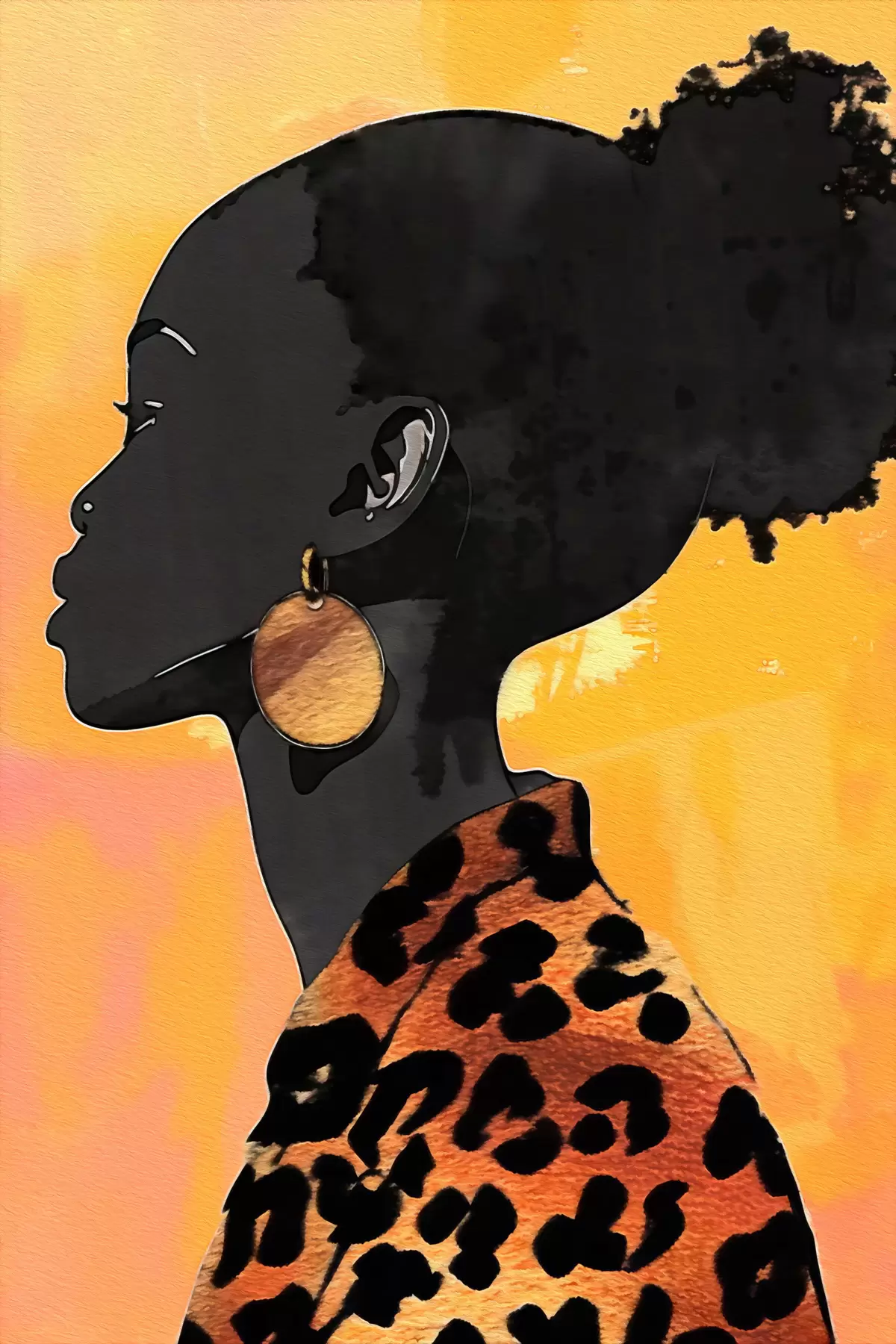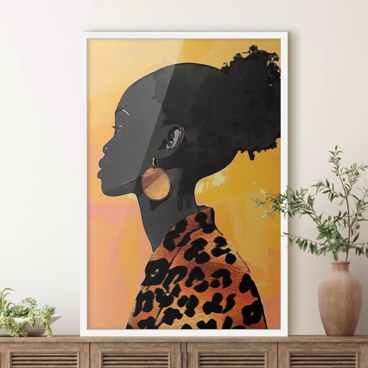Plakatas Mados tamsios odos moters ir gyvūno raštas f40112