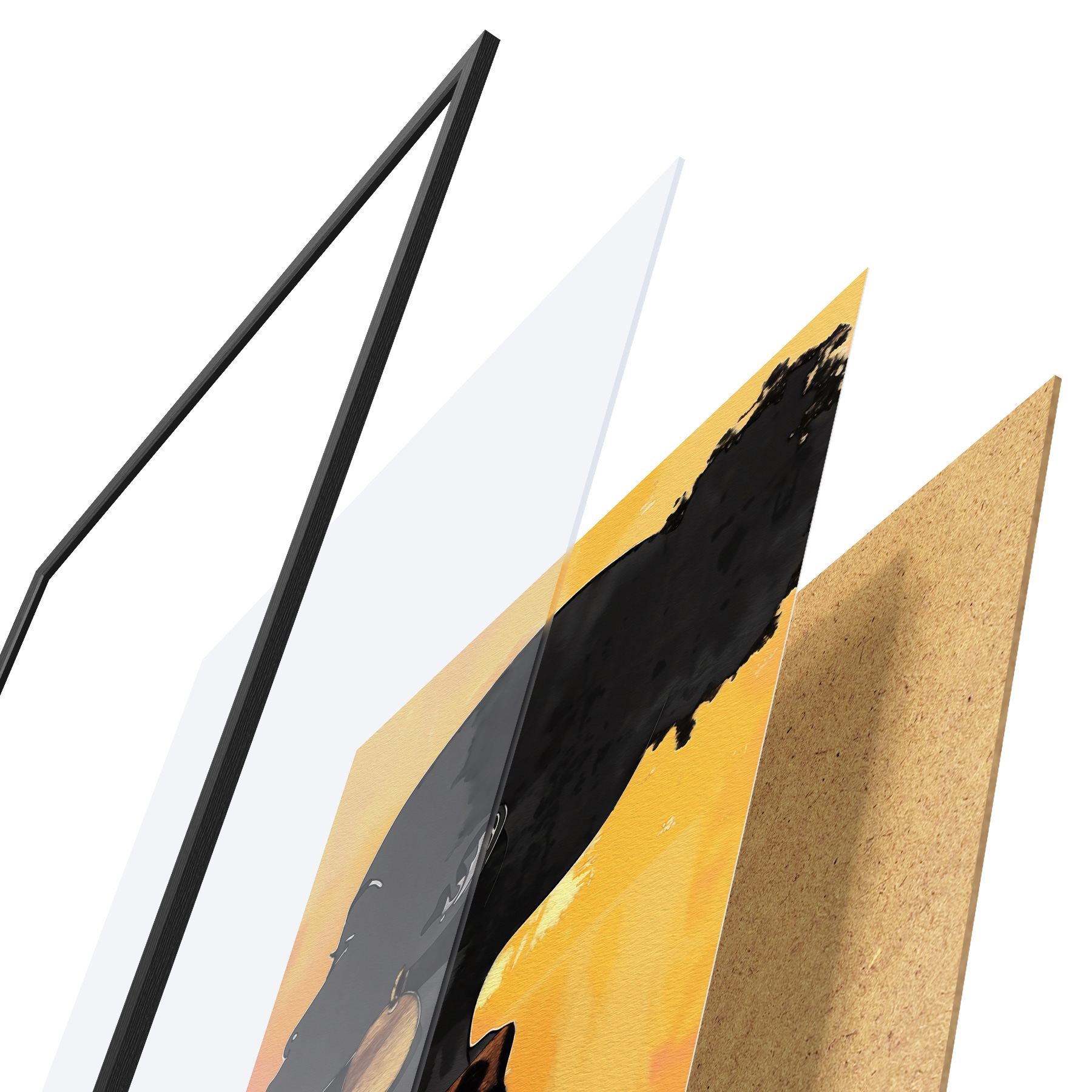 Plakatą sudaro rėmas, pleksiklas, atspausdintas vaizdas ir medžio drožlių plokštės pagrindas. Plakatą galima iš karto pakabinti ant sienos dėl kitoje pusėje esančių laikiklių.