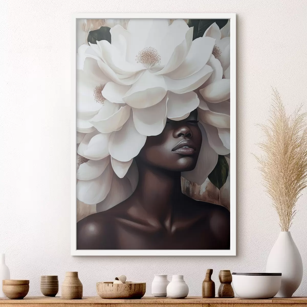 Plakatas Moteris su gėlėmis ant galvos f40123