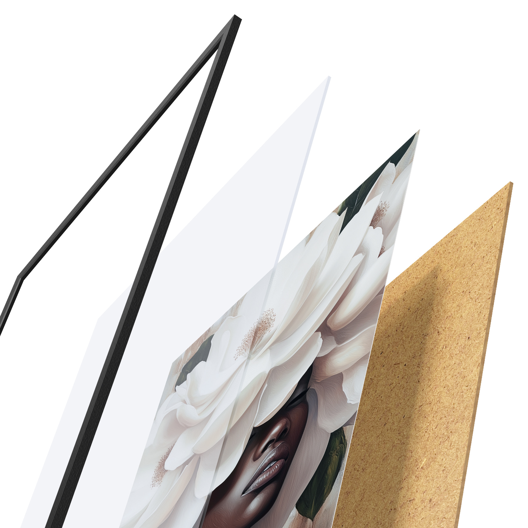 Plakatą sudaro rėmas, pleksiklas, atspausdintas vaizdas ir medžio drožlių plokštės pagrindas. Plakatą galima iš karto pakabinti ant sienos dėl kitoje pusėje esančių laikiklių.