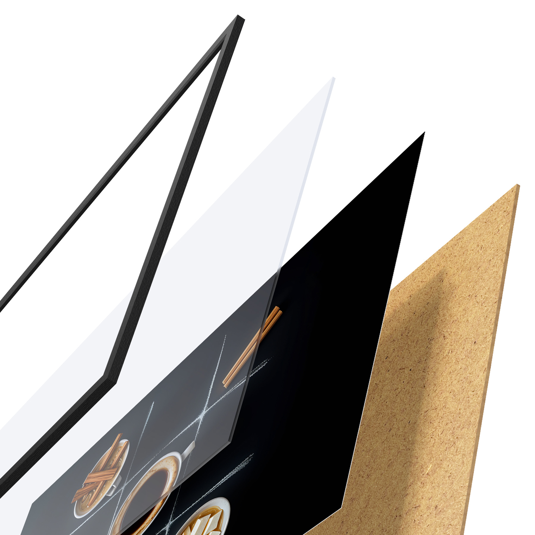 Plakatą sudaro rėmas, pleksiklas, atspausdintas vaizdas ir medžio drožlių plokštės pagrindas. Plakatą galima iš karto pakabinti ant sienos dėl kitoje pusėje esančių laikiklių.