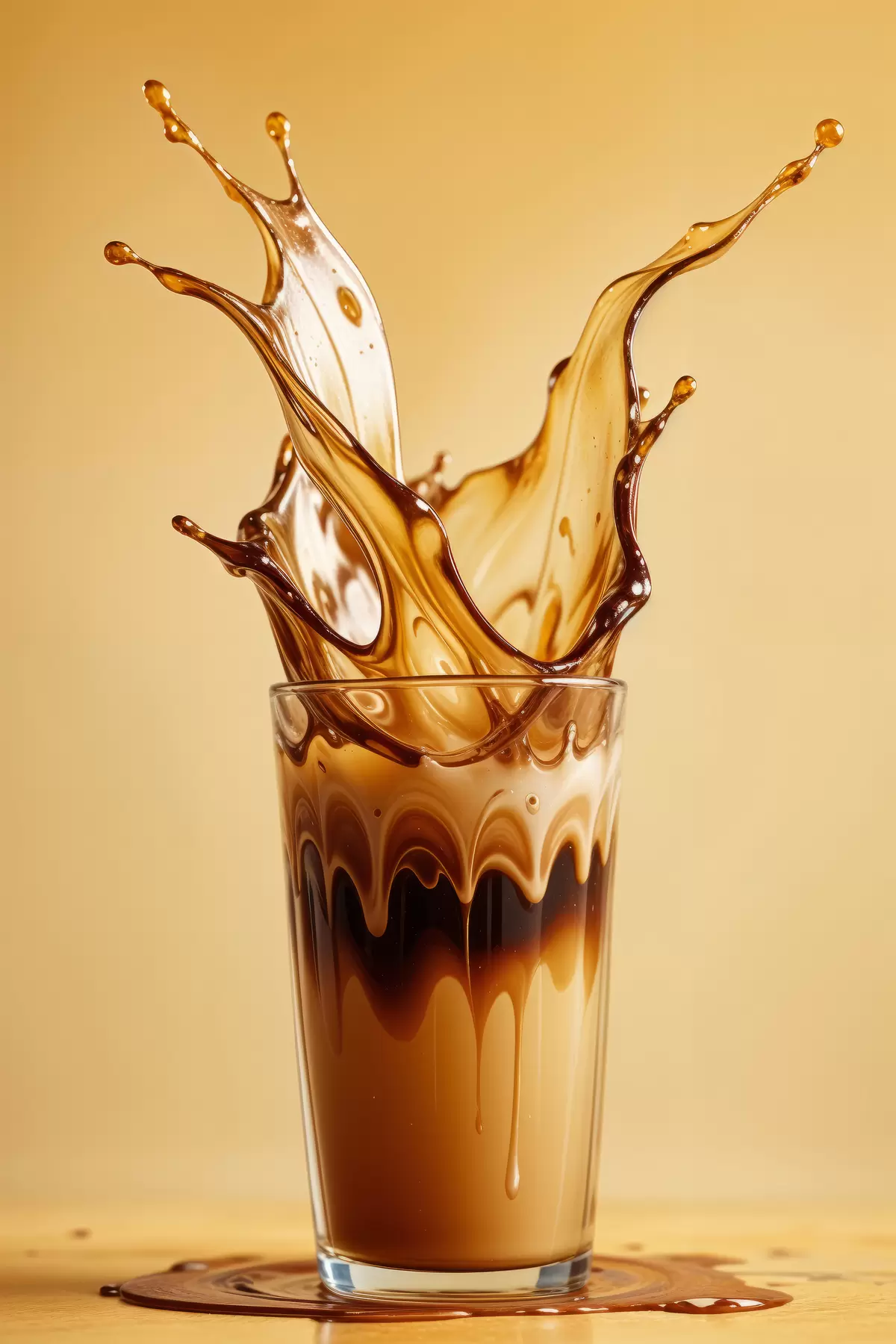 Plakatas Kavos pripildyta taurė su dramatišku purslų efektu sukuria abstraktų ir dinamišką vaizdą Ne f40165